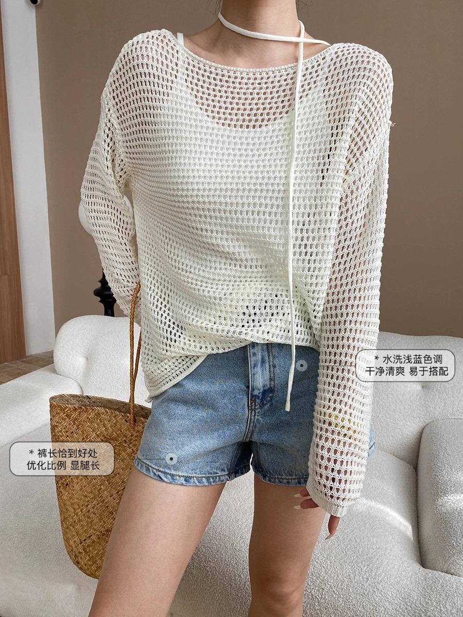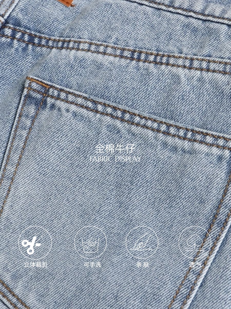 신안 배 모양의 강한 푸시 코튼 세척 높은 허리 A 모양의 넓은 다리 슬리밍 긴 다리 데님 반바지 SN7322