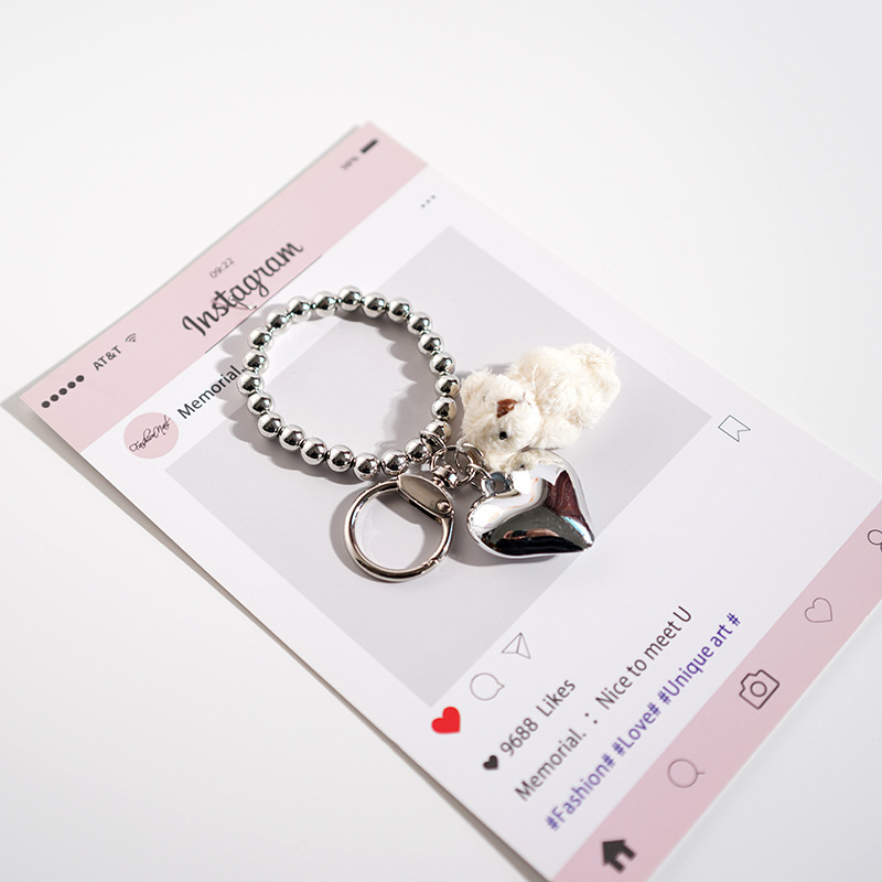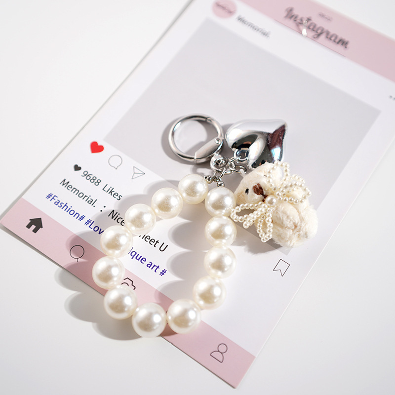 진주 라운드 3 차원 봉제 곰 매달려 가방 펜던트 키 체인 간단한 우아한 소녀 심장 인터넷 연예인