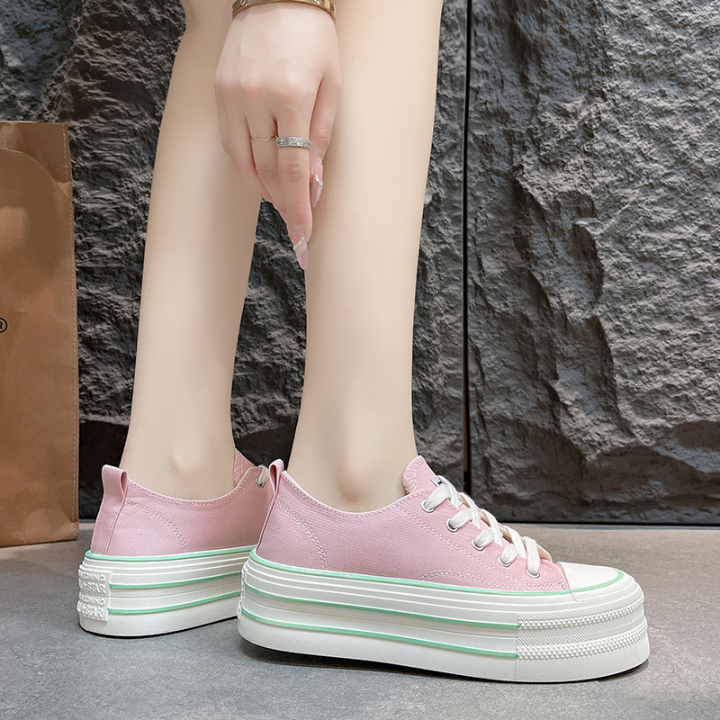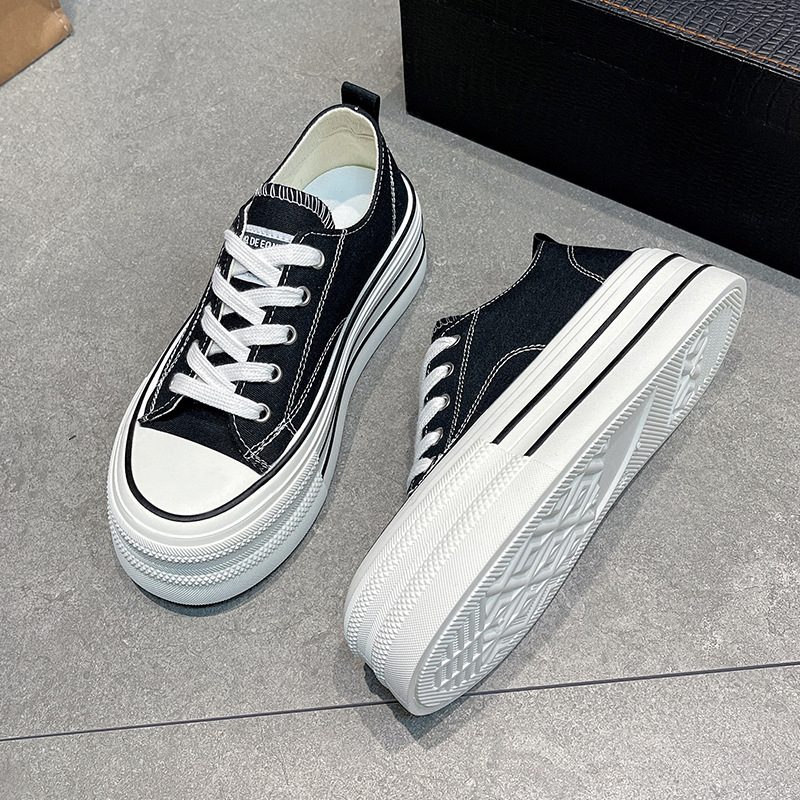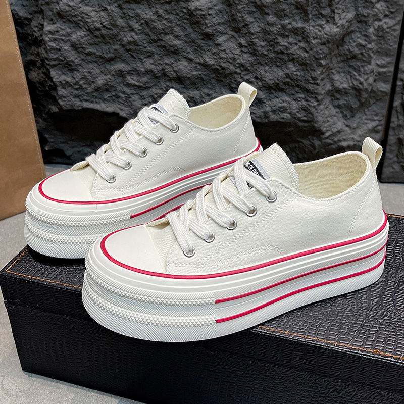 작은 공공 고가의 두꺼운 밑창 캔버스 신발 여성의 2025 새로운 흰색 신발 학생 다목적 로우 탑 보드 신발