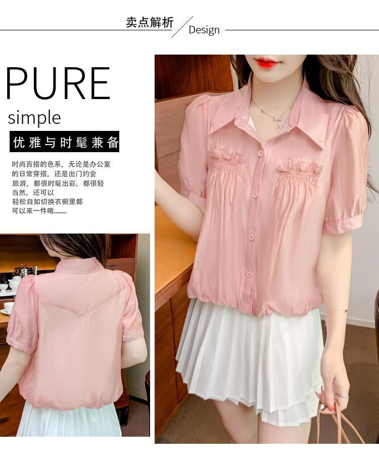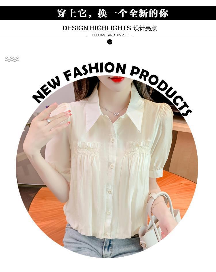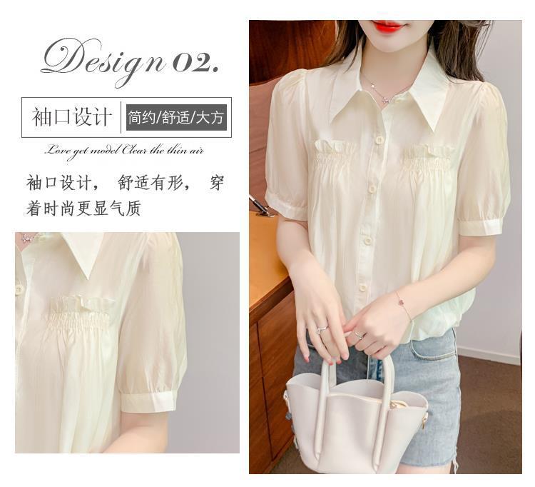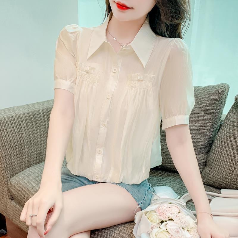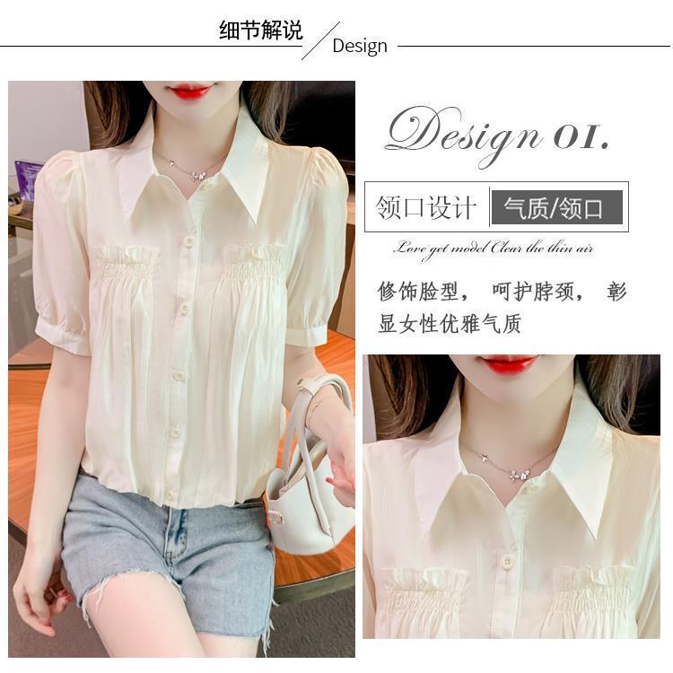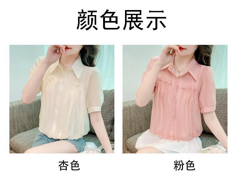 반팔 쉬폰 셔츠 여성 2024 새로운 여름 슬리밍 배를 덮는 외국 스타일의 나이를 줄이는 디자인 틈새 탑