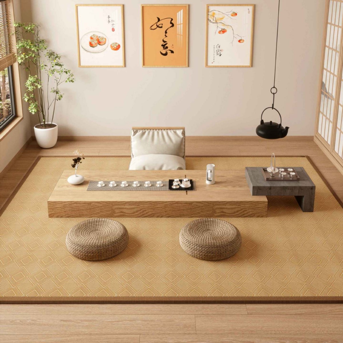 일본 다다미 거실 카펫 새로운 중국 스타일 봄과 여름 가정용 커피 테이블 티 룸 침실 등나무 매트 카펫 바닥 매트
