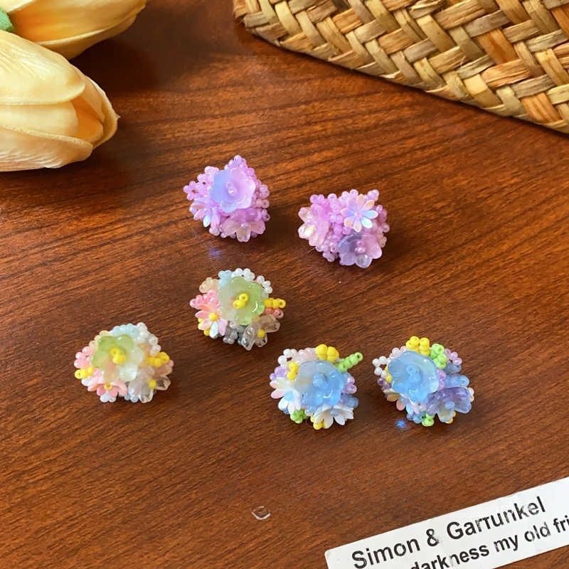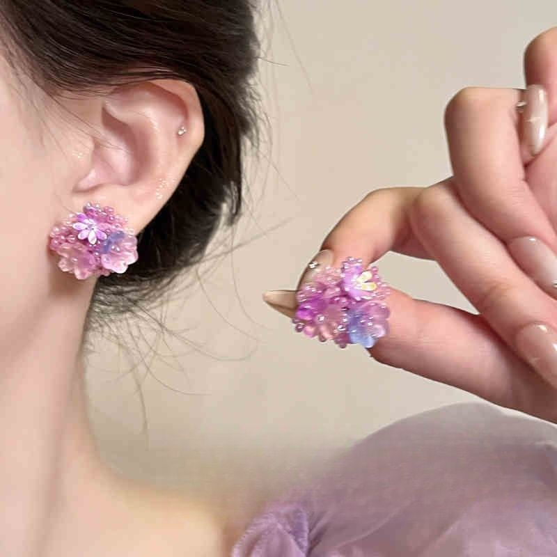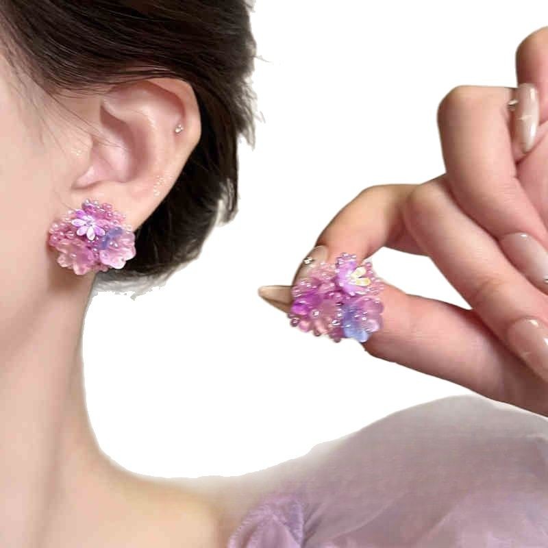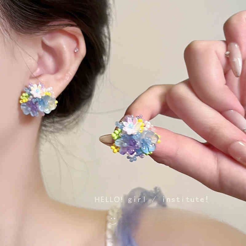 한여름 밤 정원 봄 도파민 꽃 구슬 귀걸이 여성 해변 휴일 귀 머리 장식 고급 감각 귀걸이