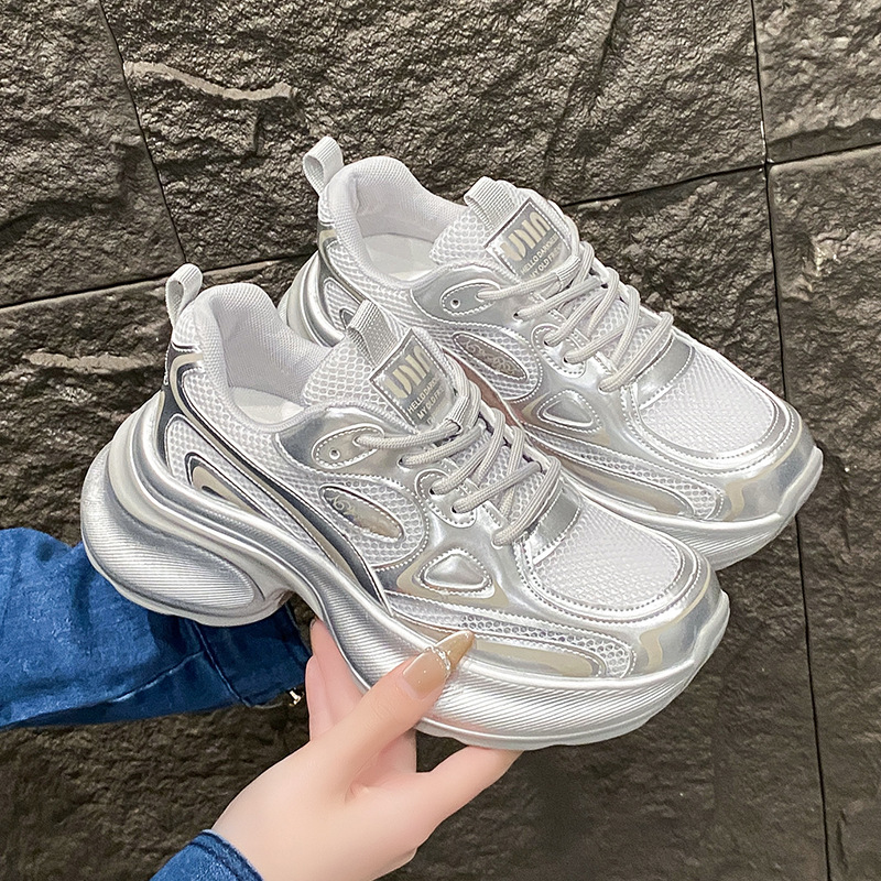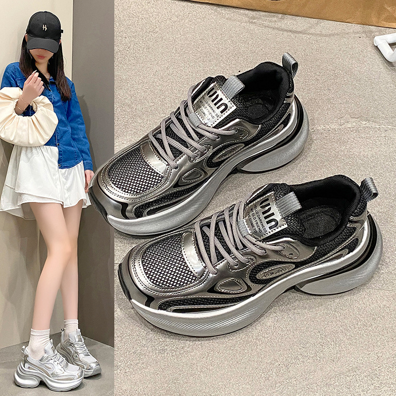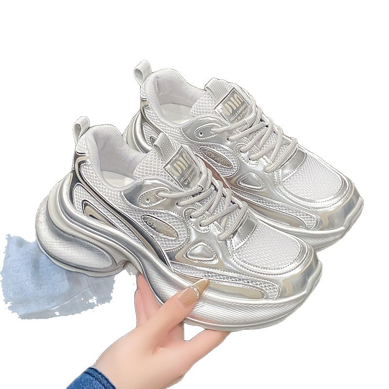 Putian Torre 신발 여성 2025 새로운 실버 두꺼운 바닥 증가 부드러운 바닥 학생 올 매치 캐주얼 신발 트렌디 신발 인터넷 레드 신발