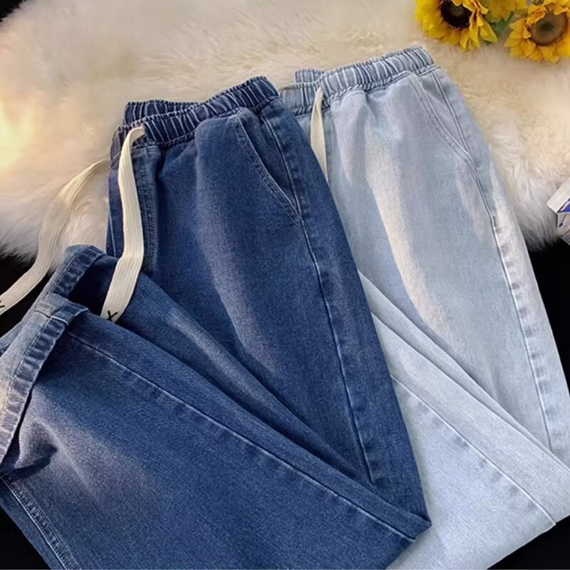 말레이시아 플러스 사이즈 100.00kg Drawstring Elastoelastic 허리 청바지 남자 여름 루즈 스트레이트 홍콩 스타일 트렌디 브랜드 올매치 바지