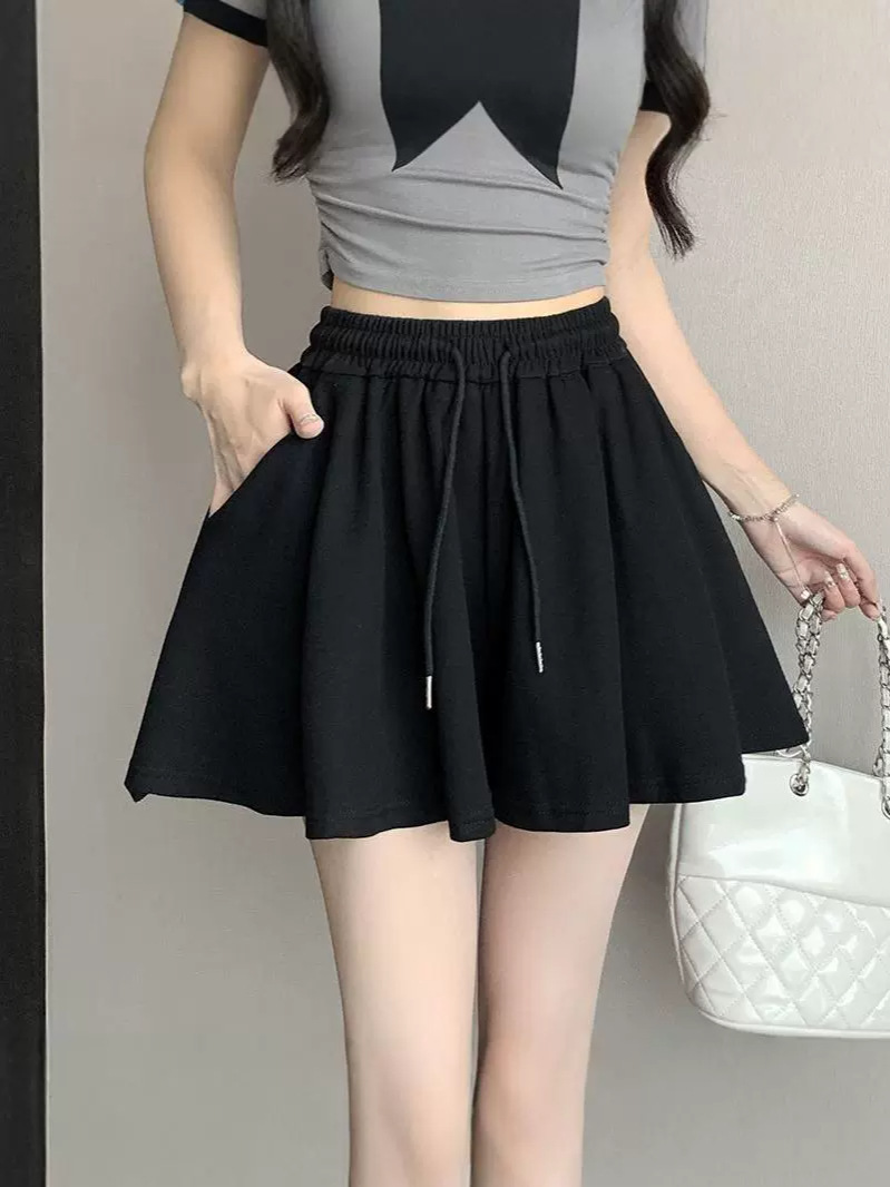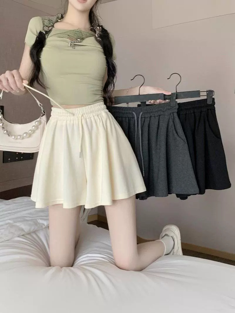 한국식 바지 스커트 여자 Ins 여름 발레 반바지 여자 높은 허리 스포츠 A 라인 와이드 레그 컬로 테스 작은 핫 팬츠 새로운