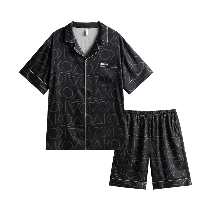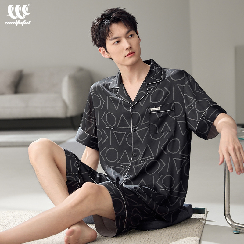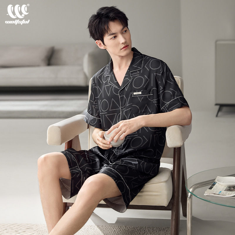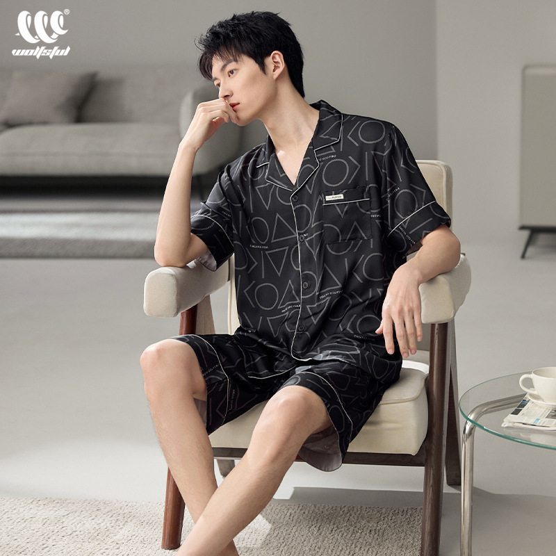 남자 잠옷 여름 아이스 실크 반팔 반바지 세트 남자 여름 2025 새로운 모방 실크 홈 옷