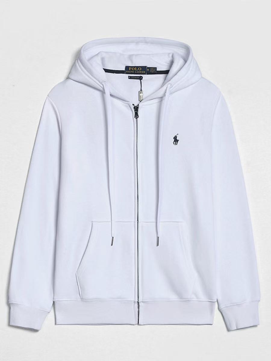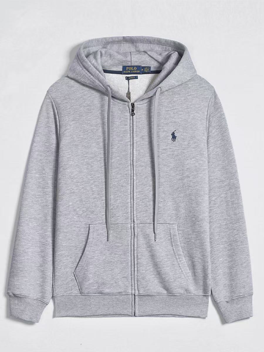 크로스 보더 랄프 RL 폴 롱 슬리브 스웨터 남성용 캐주얼 솔리드 컬러 자수 포니 마크 지퍼 가디건 후드 재킷