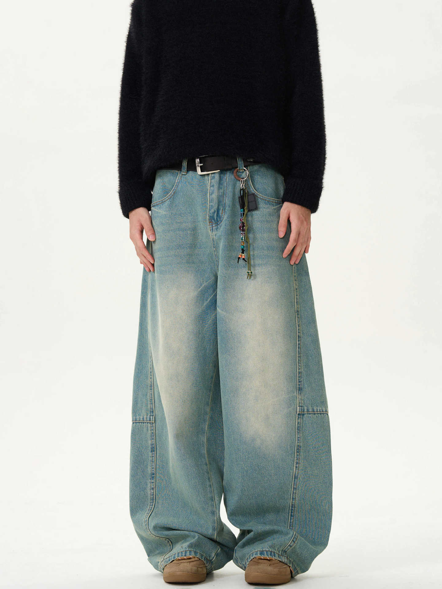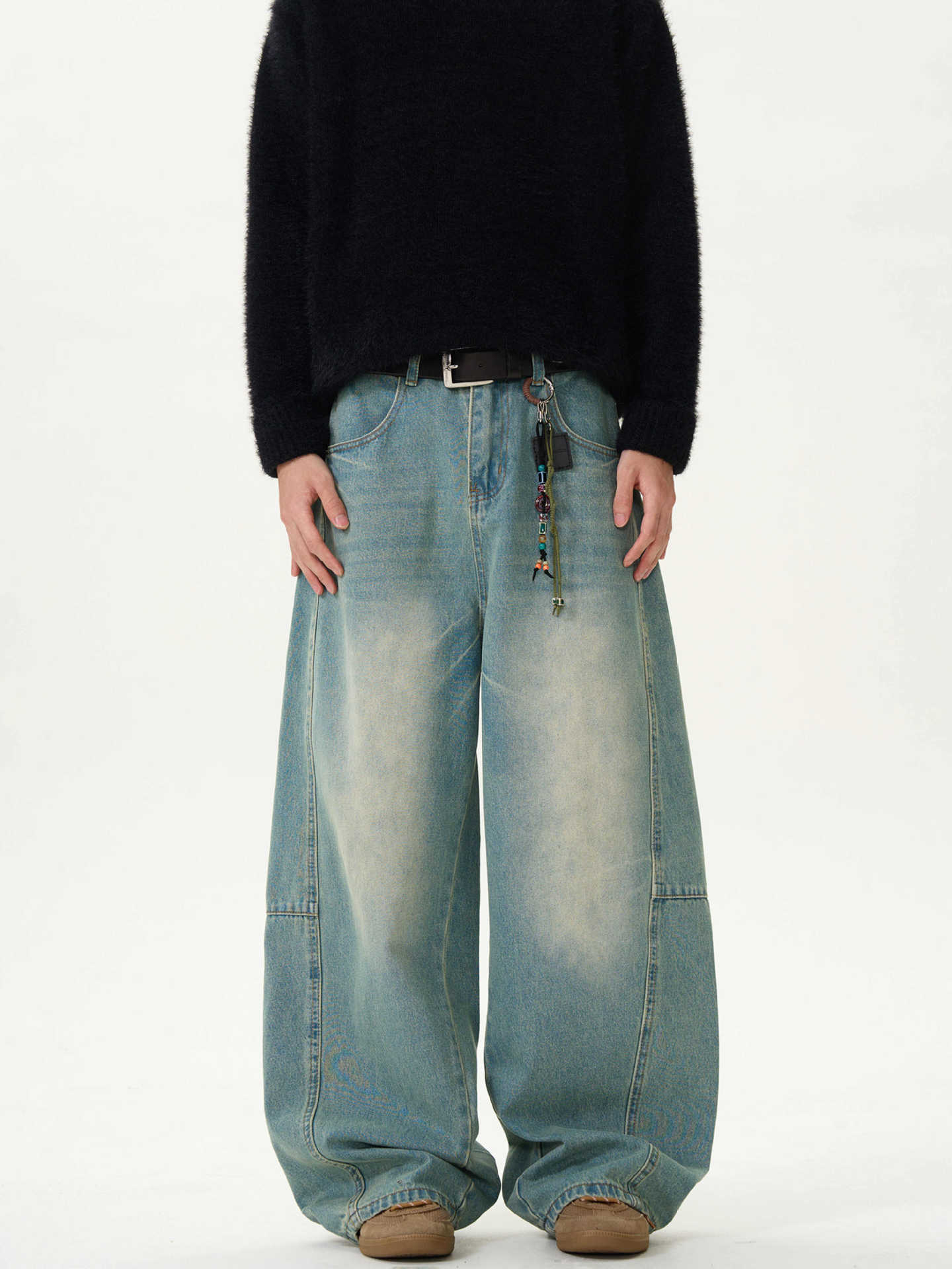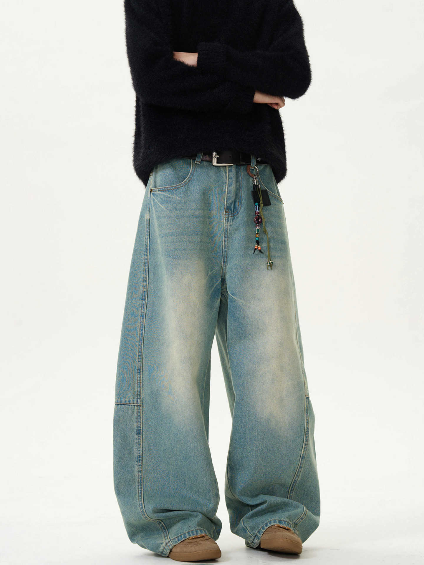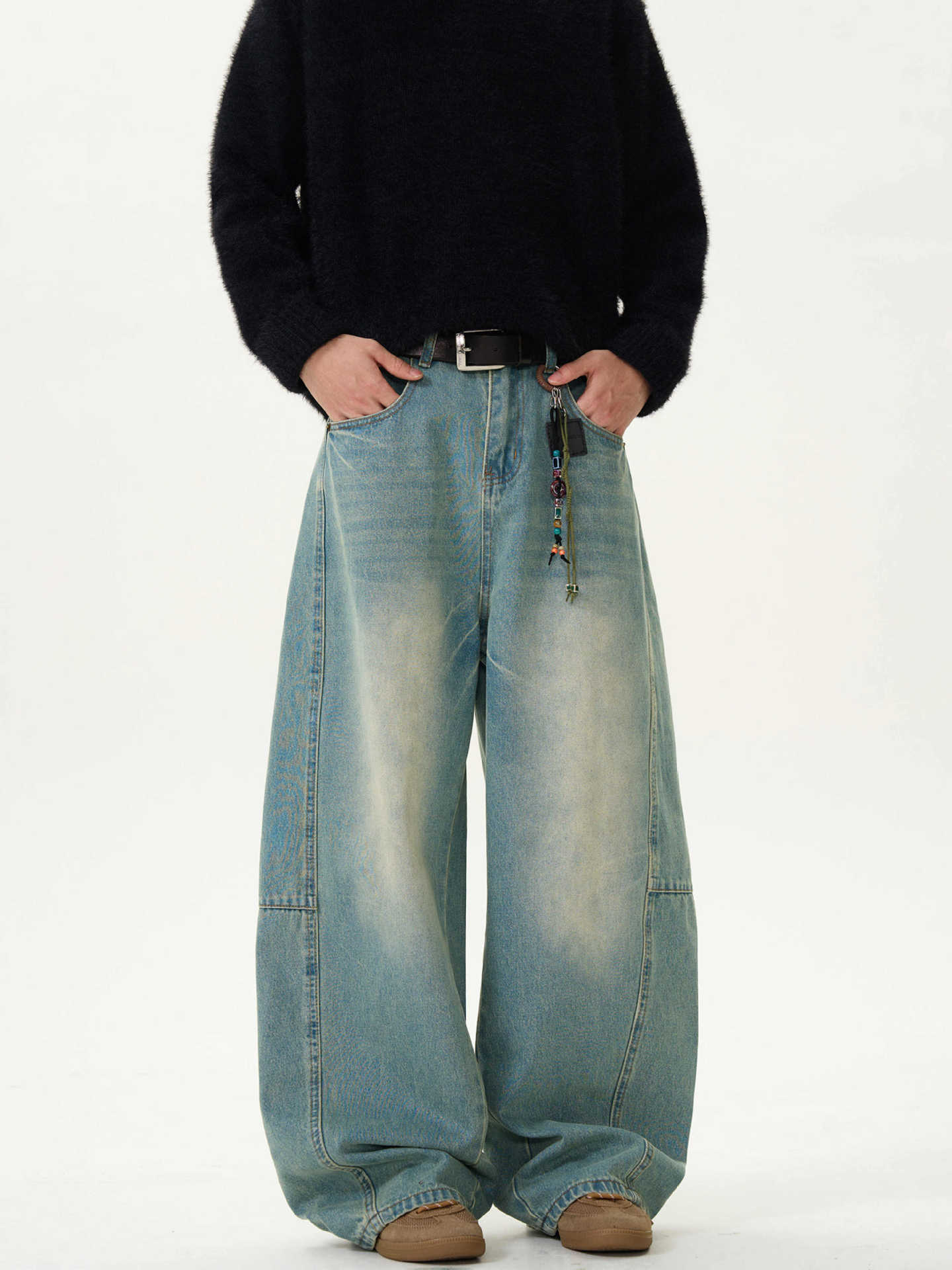 아메리칸 스타일 레트로 클린 핏 씻은 라이트 컬러 청바지 유니섹스 와이드 레그 루즈 스트레이트 하이 스트리트 캐주얼 트렌디 팬츠