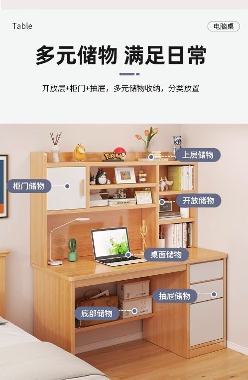 새로운 데스크톱 컴퓨터 책상 간단한 책장 책상 통합 책장 조합 간단한 현대 침실 학습 책상