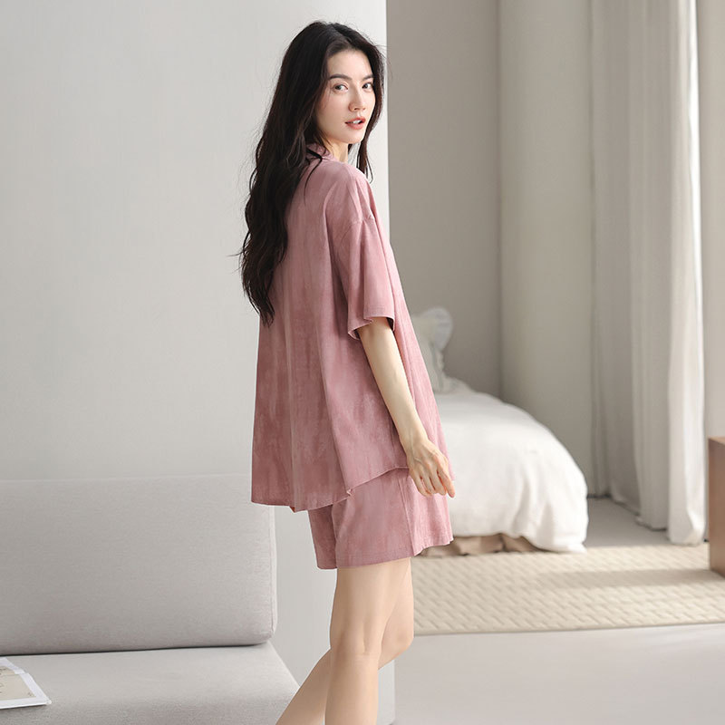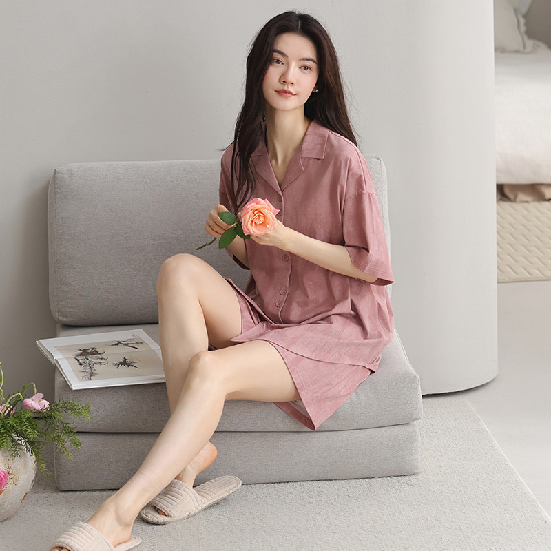 부드러운 면 잠옷 여성의 여름 시원한 느낌 순수한면 반팔 반바지 홈 옷 여름 얇은 카디건 세트