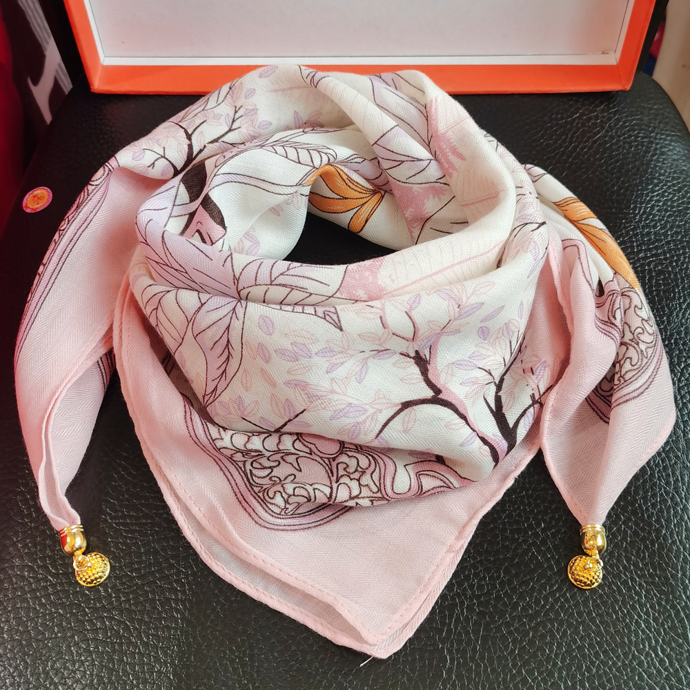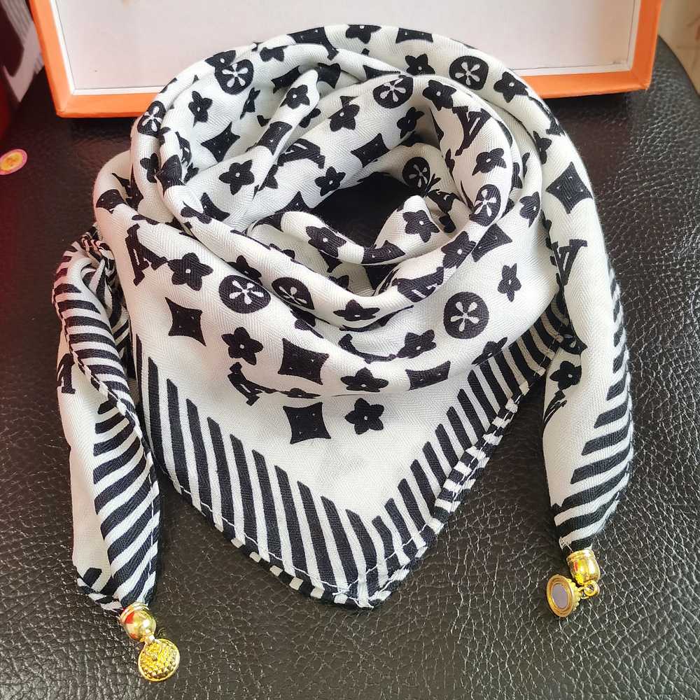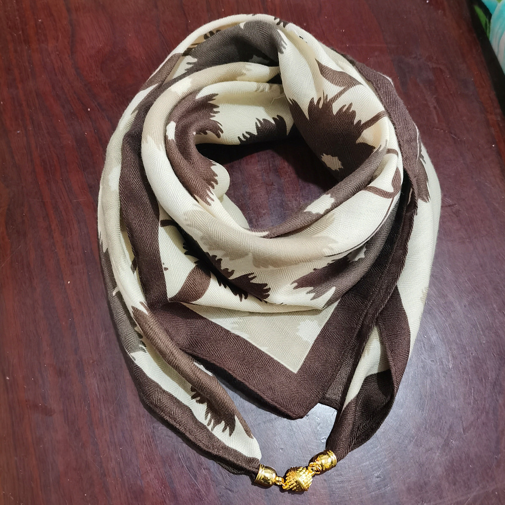 여성용 자석 버튼 면 및 린넨 작은 사각형 스카프, 다기능 봄, 가을 다용도 고급 목 보호 작은 스카프, 게으른 스카프