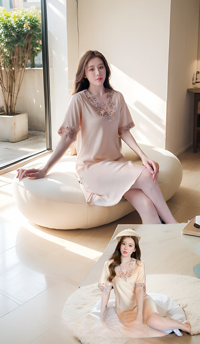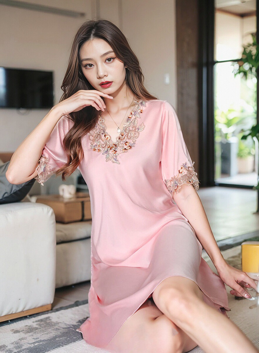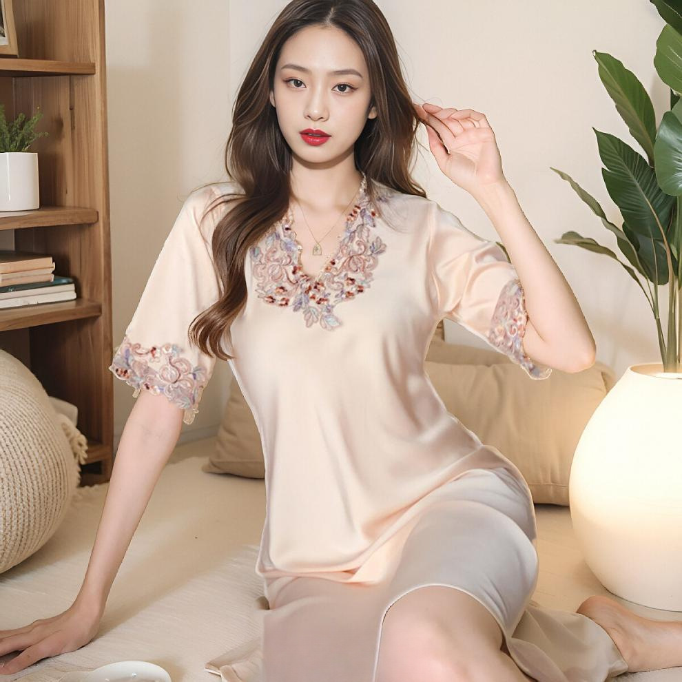 멀베리 실크 잠옷 여름 여성 홈웨어 드레스 실크 섹시한 레이스는 외부에 착용할 수 있습니다 반팔 여성 잠옷