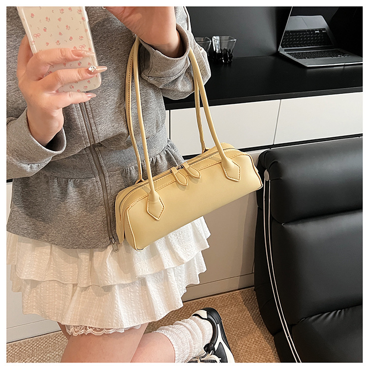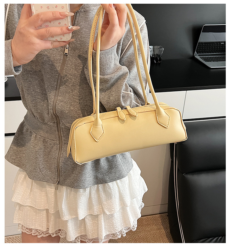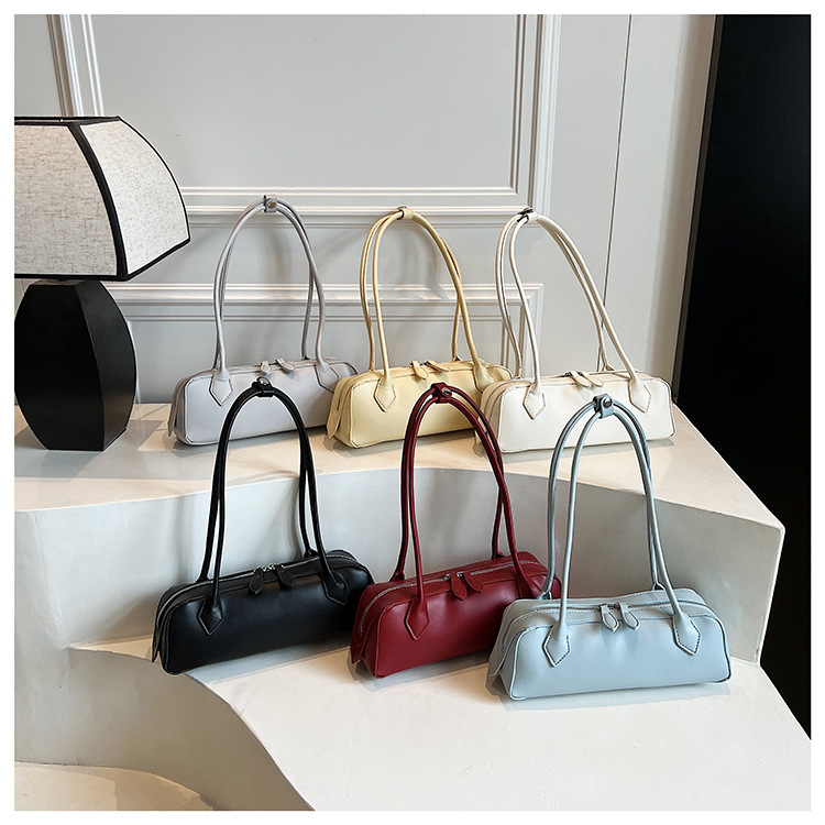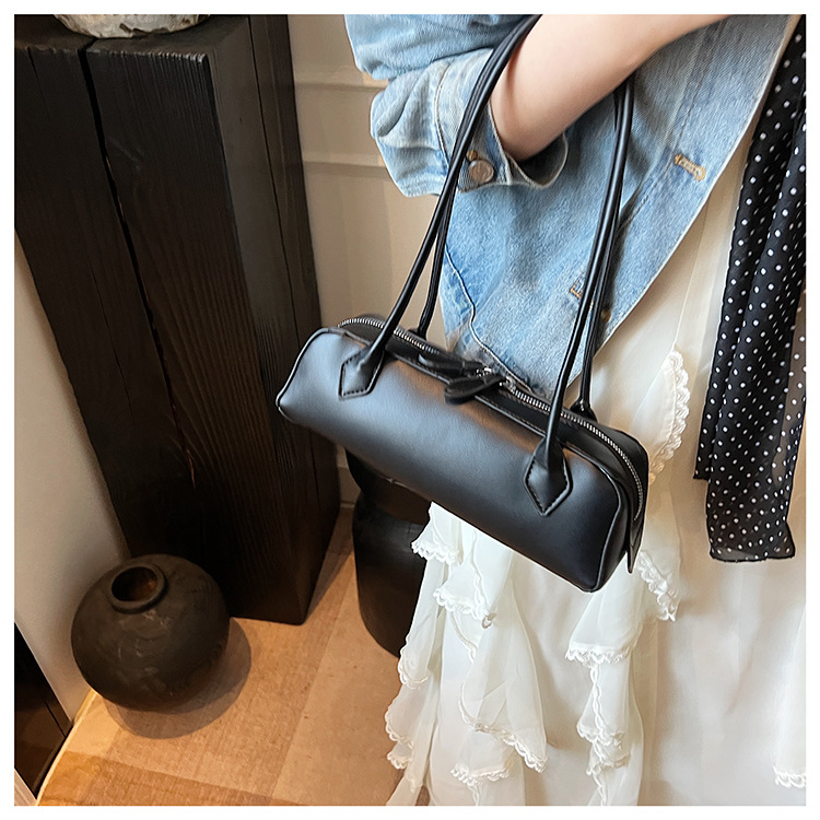 프랑스 틈새 소시지 가방 레트로 언더암 바게트 가방 PU 여성용 핸드백 캐주얼 통근 올 매치 숄더 백