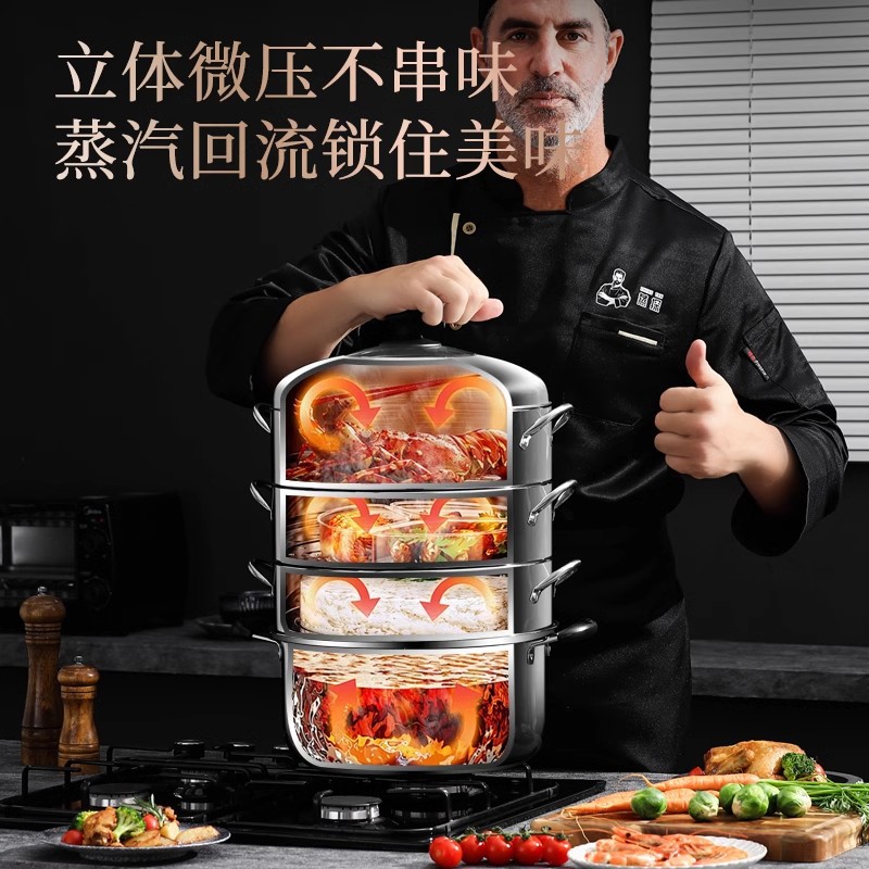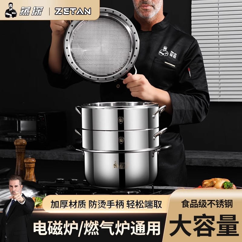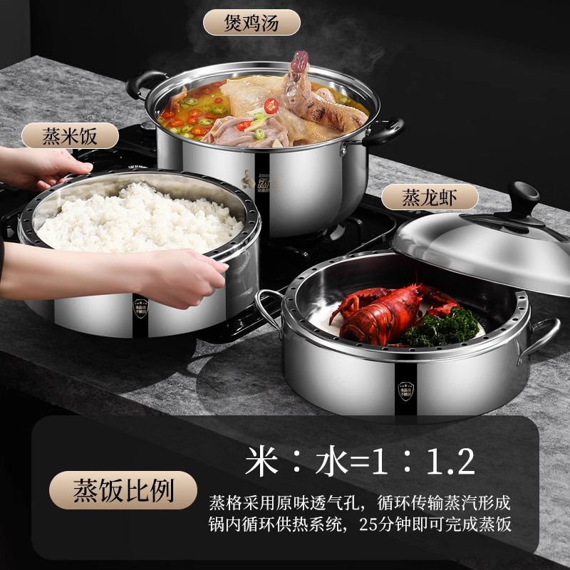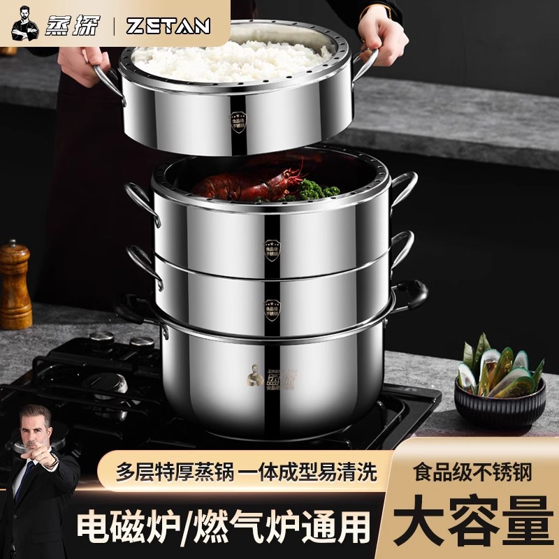 [스팀 프로브] 304 증기선 가정용 증기선 스테인레스 스틸 증기선은 풍미 다층 에너지 절약 냄비 증기선 서랍을 두껍게하지 않습니다.