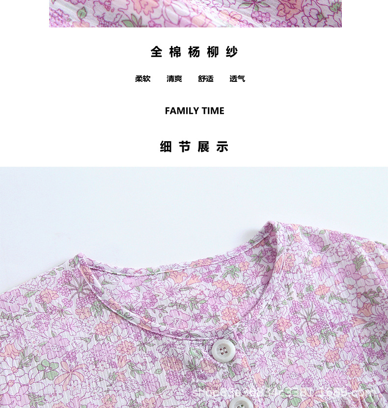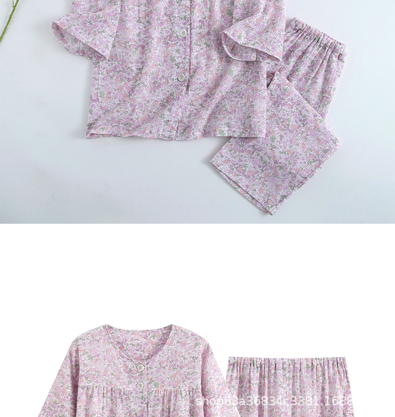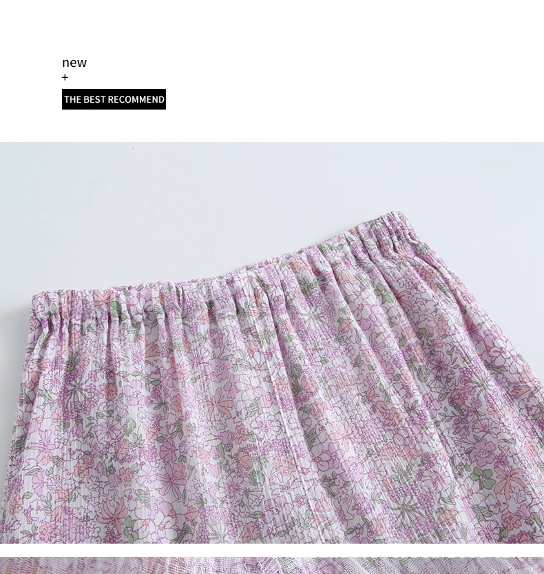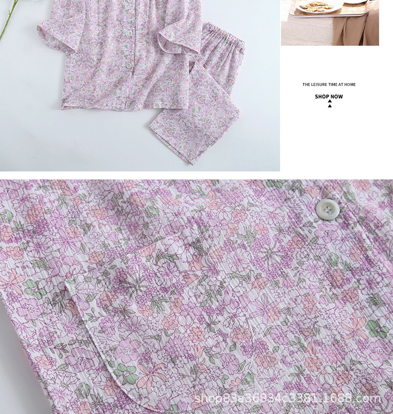 여성용 면 소재 9부 소매 캐주얼 가디건, 단추 달린 9부 바지, 홈웨어, 잠옷, 여름용 꽃무늬 심플 캐주얼 소녀 스타일