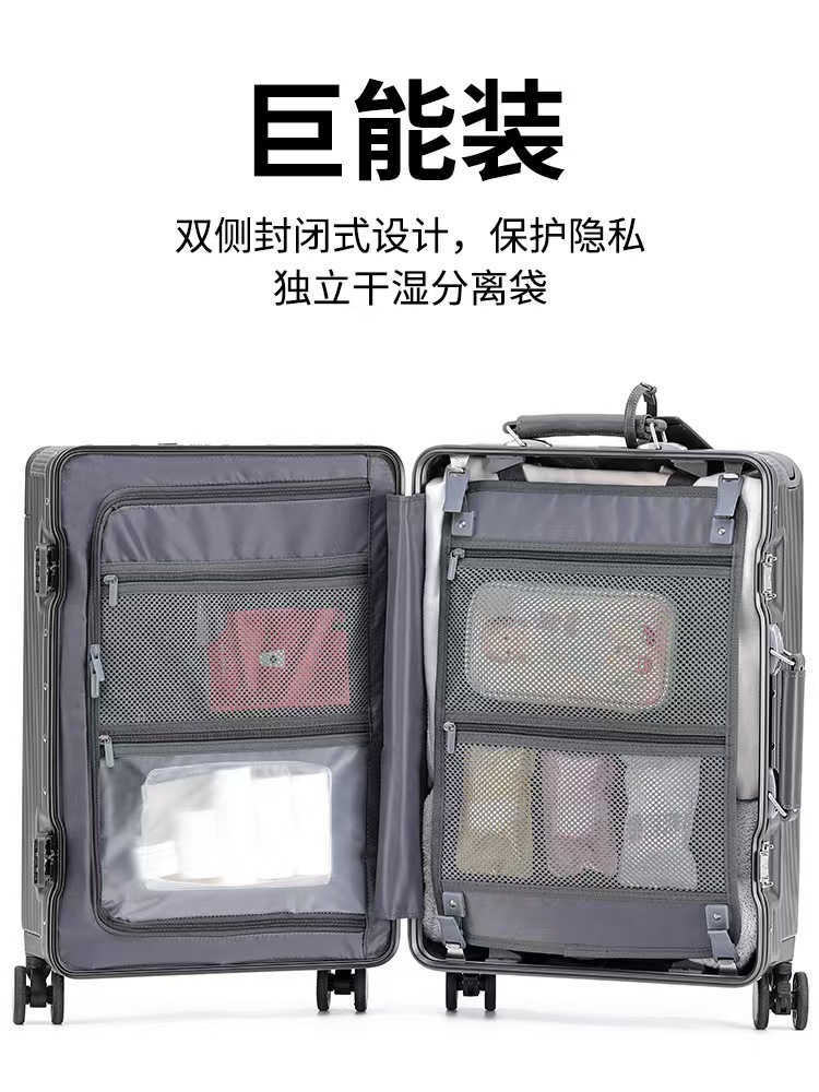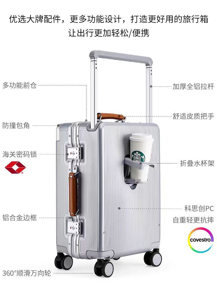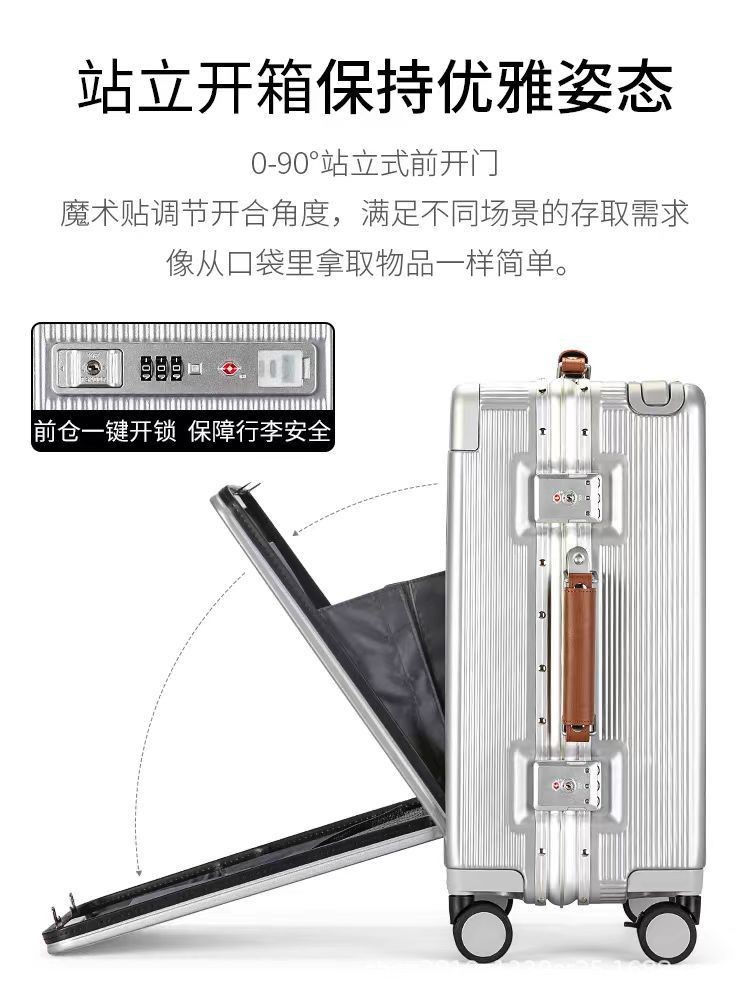 국경 간 알루미늄 프레임 전면 개방 수하물 케이스 여성 20 인치 와이드 타이 로드 보드 케이스 남성 다기능 가방 트롤리 케이스