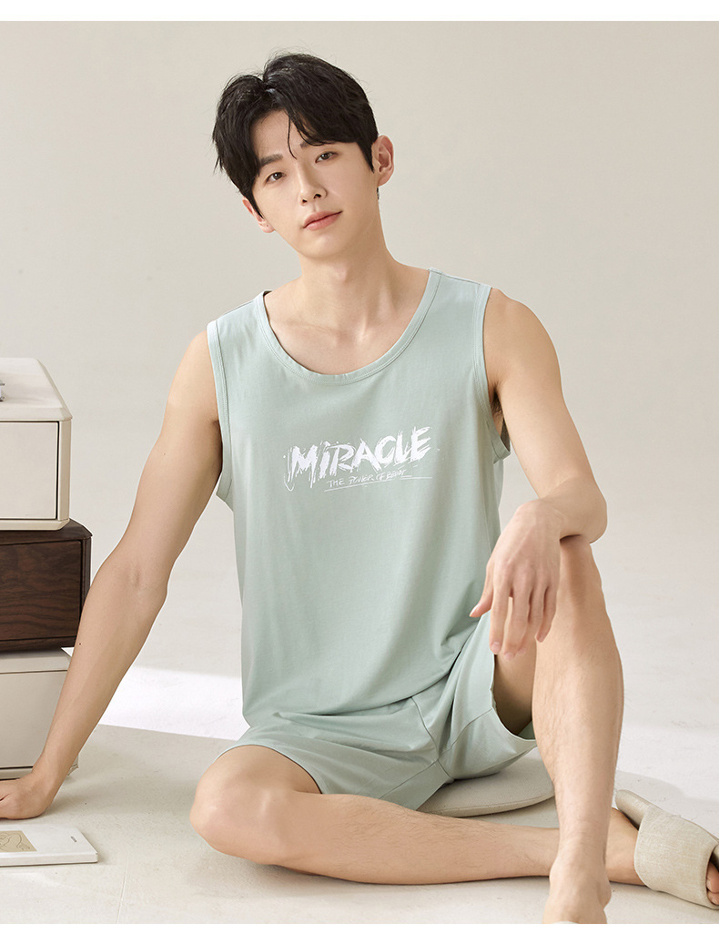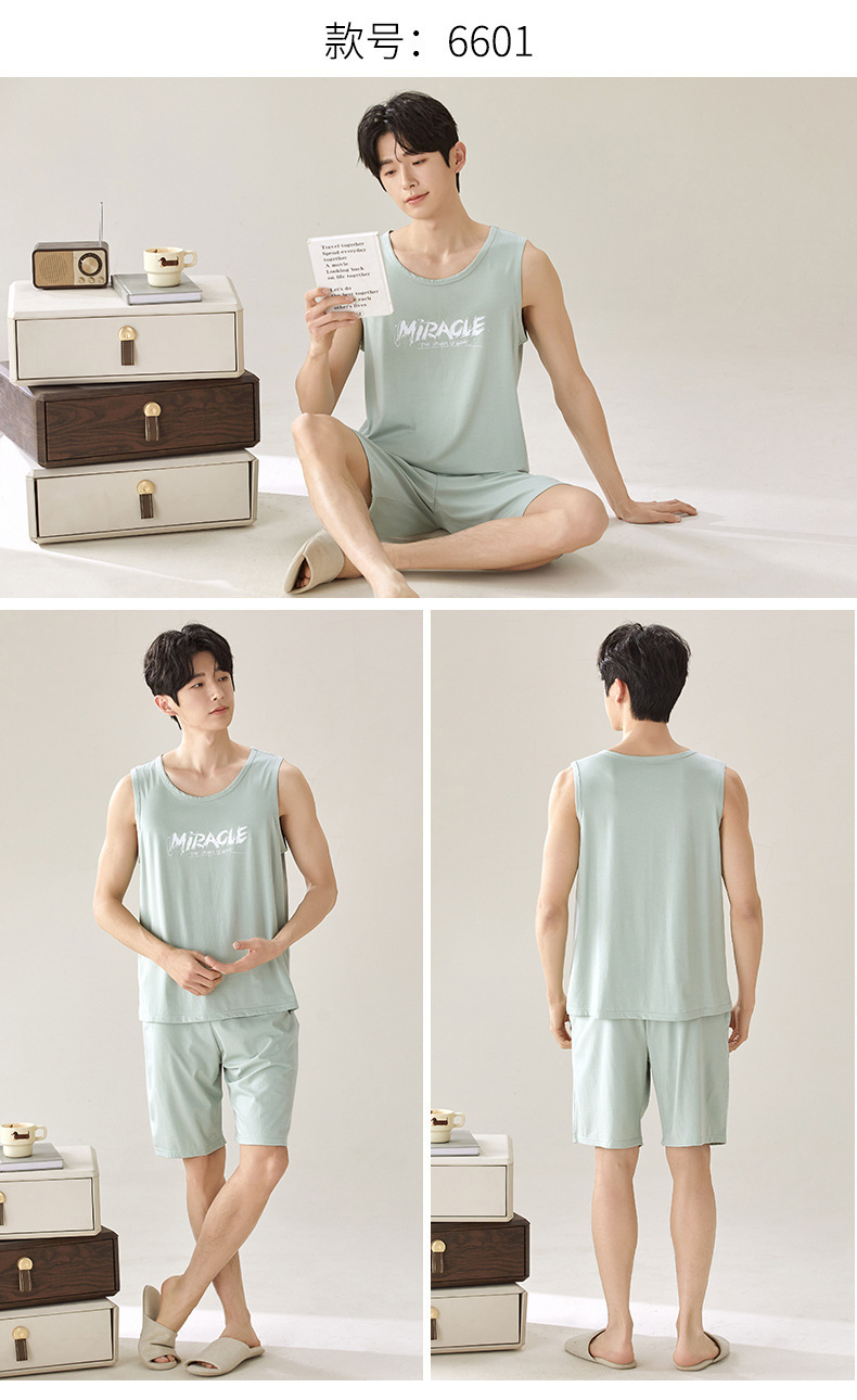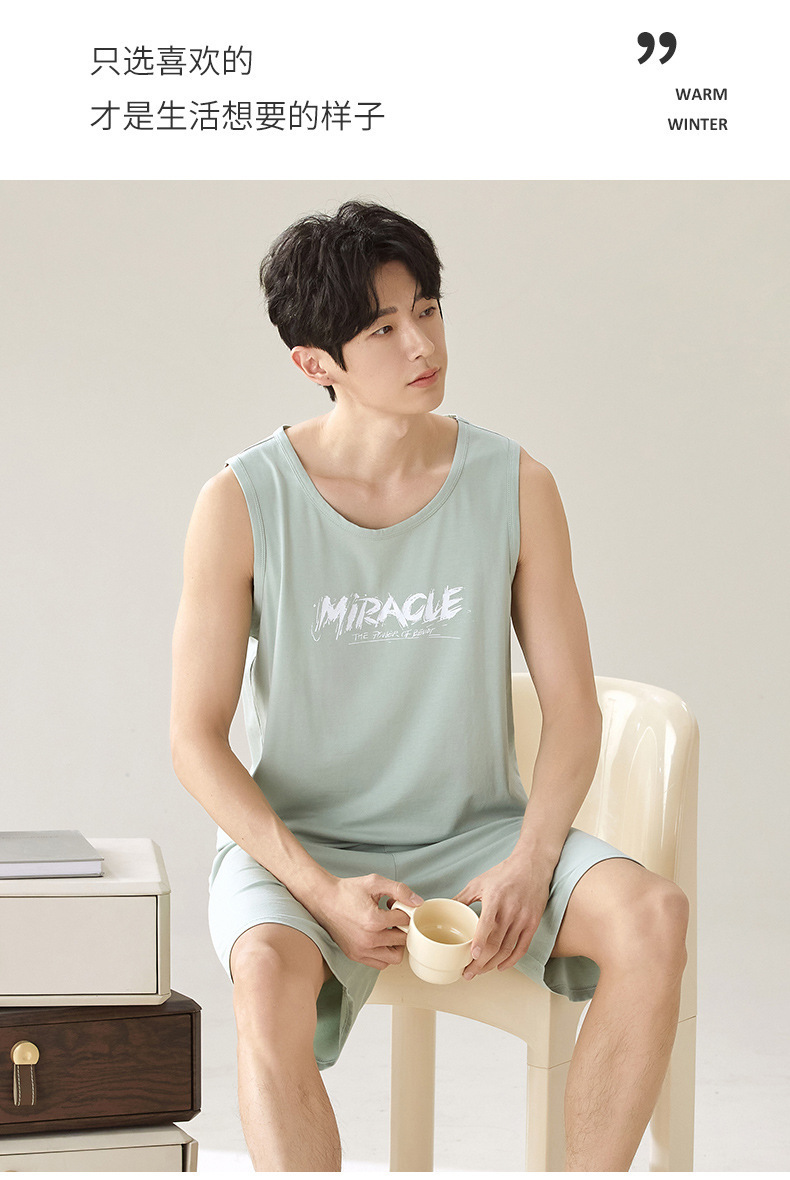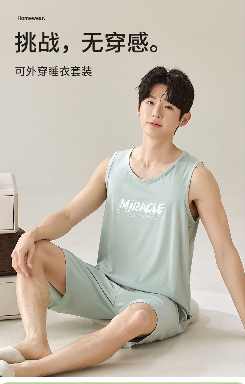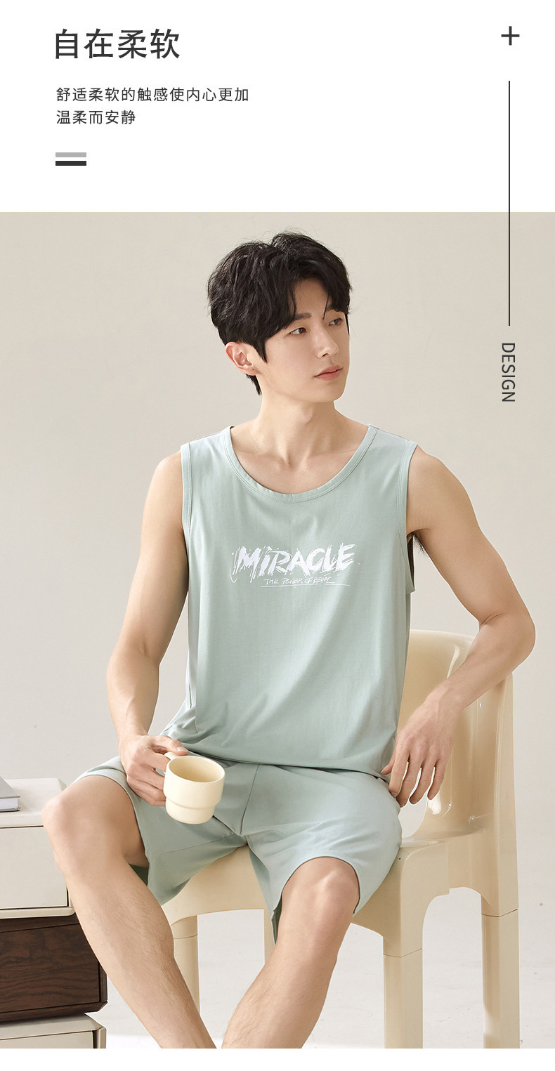 남성용 여름 신작 잠옷, 조끼, 반바지, 민소매 모달, 시원하고 통기성이 좋으며 편안하고 심플하며 청소년이 밖에서 입을 수 있습니다.
