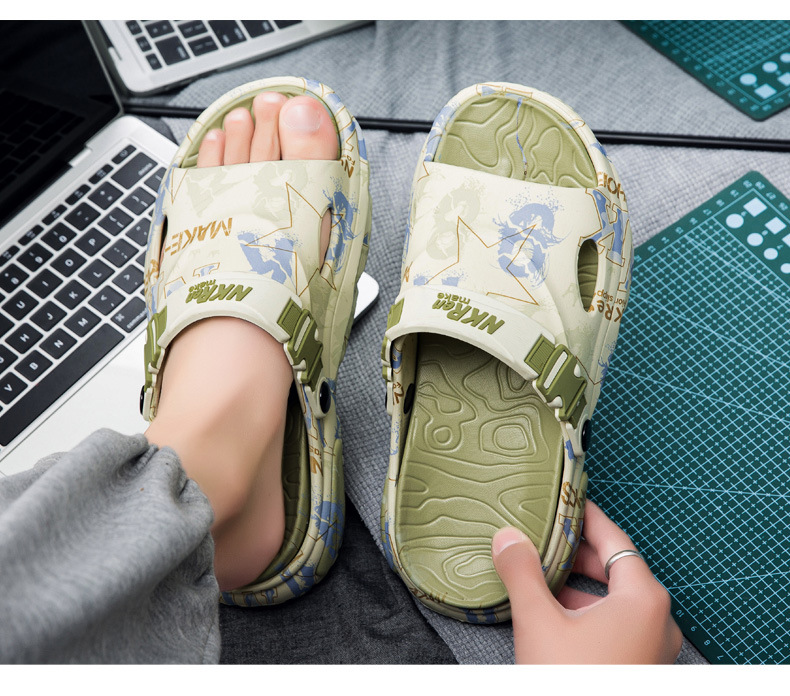 슬리퍼 남성용 2025 년 새로운 여름 야외 착용 미끄럼 방지 셔플 플랫폼 샌들 야외 운전 듀얼 사용 비치 샌들