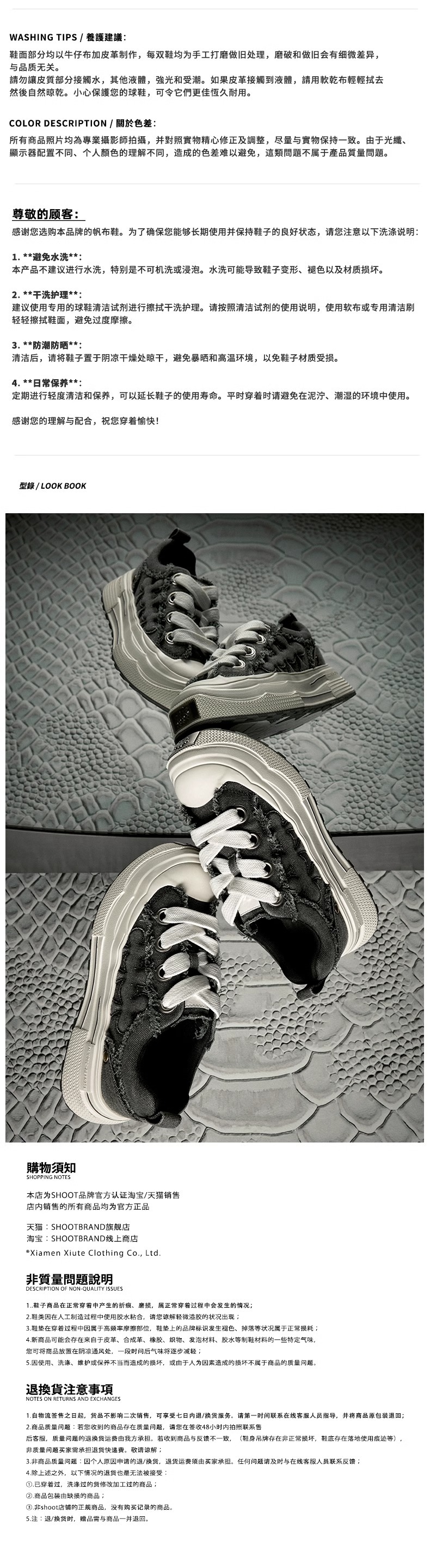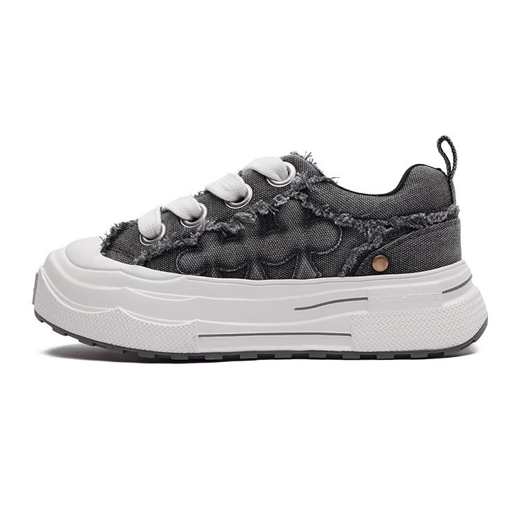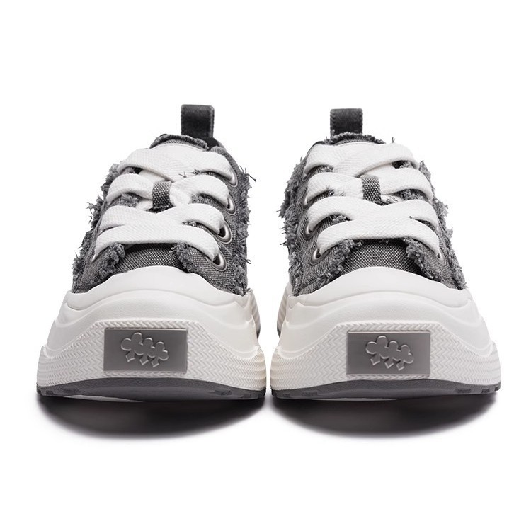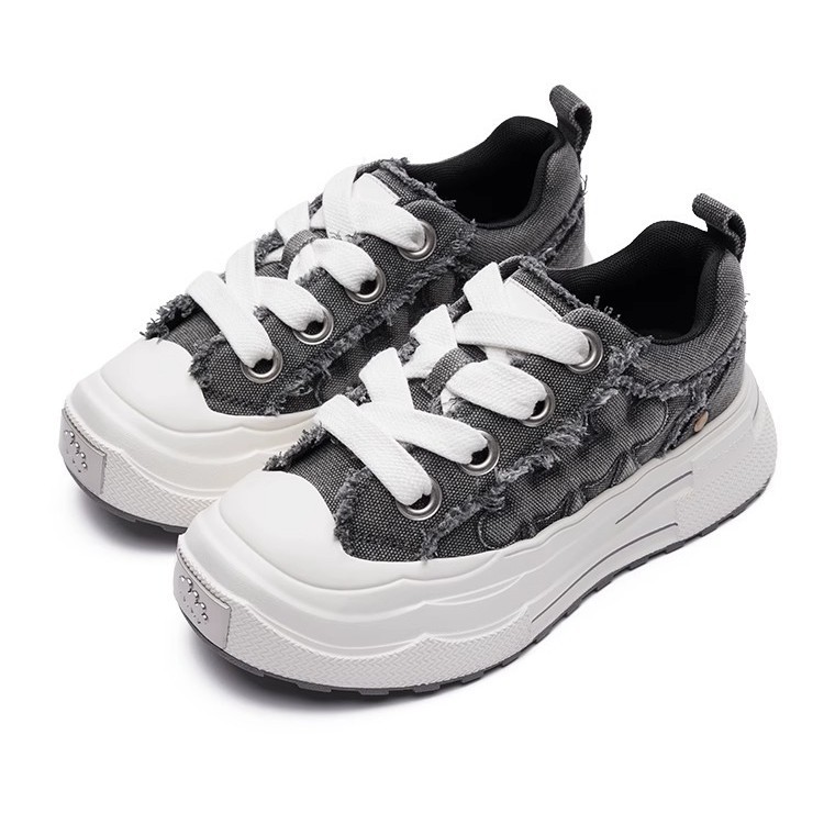 Zhou Shen의 SHOOT BRAND Ensemble Thick Sole 증가 복고풍 파괴 데님 회색 캔버스 신발