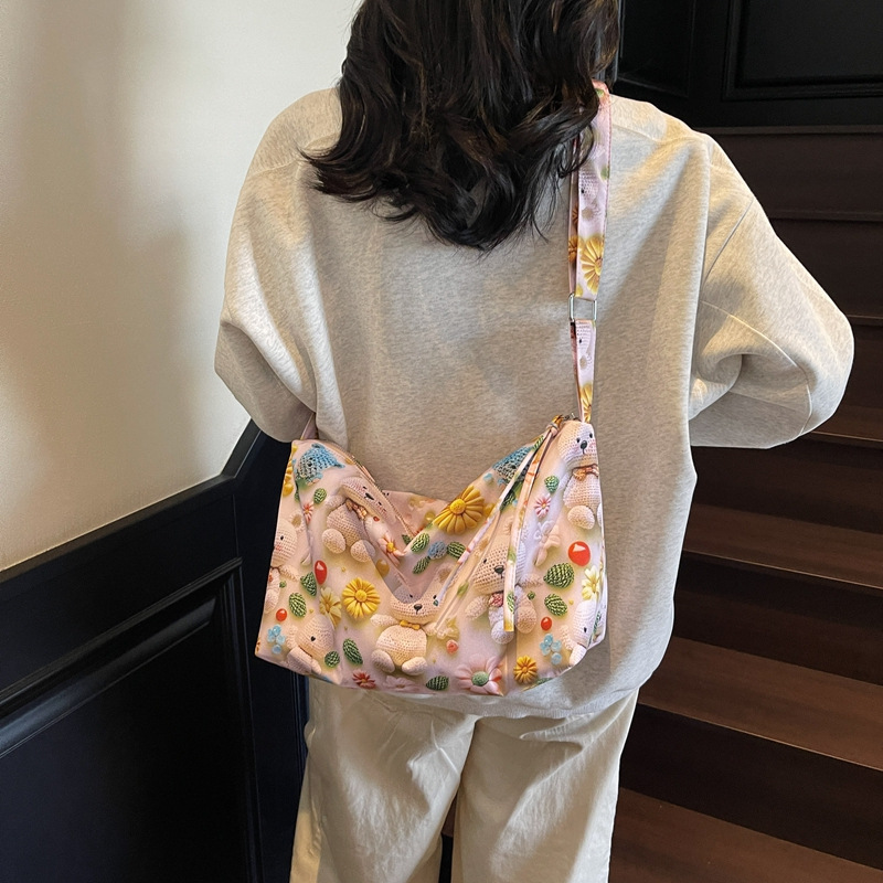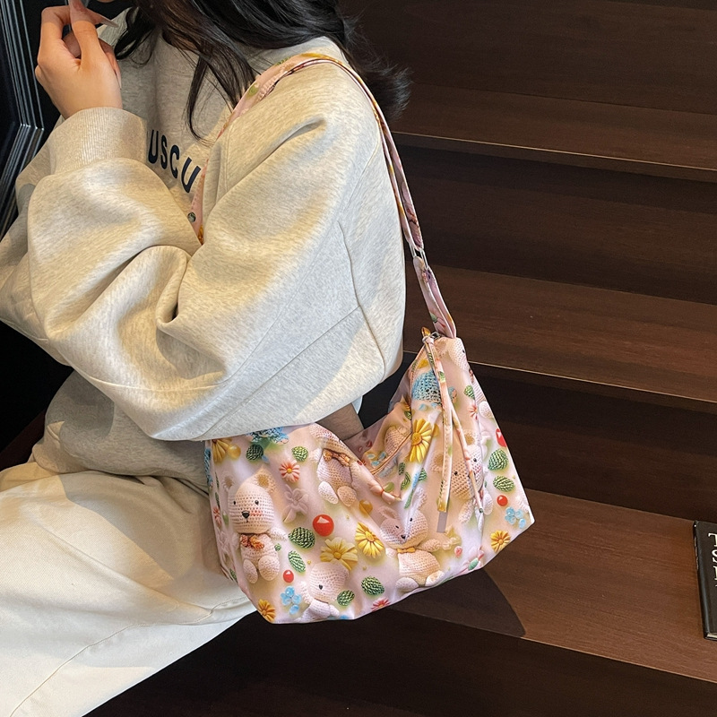 만화 인쇄 가방 여성의 2025 새로운 대용량 경량 어깨 가방 유행 달콤한 신선한 크로스 바디 가방