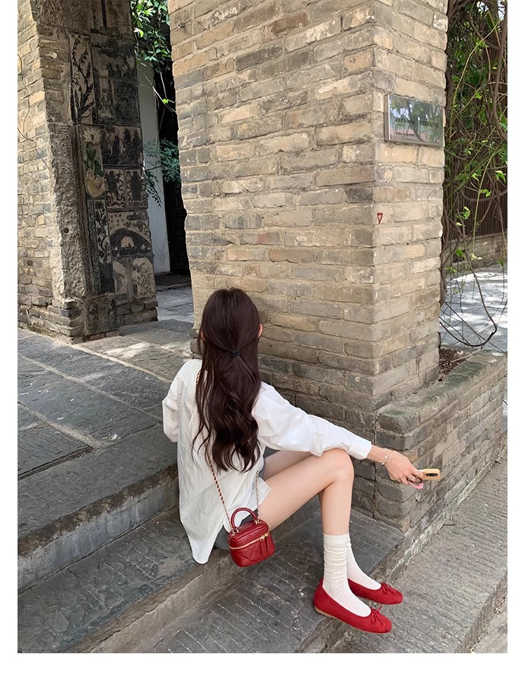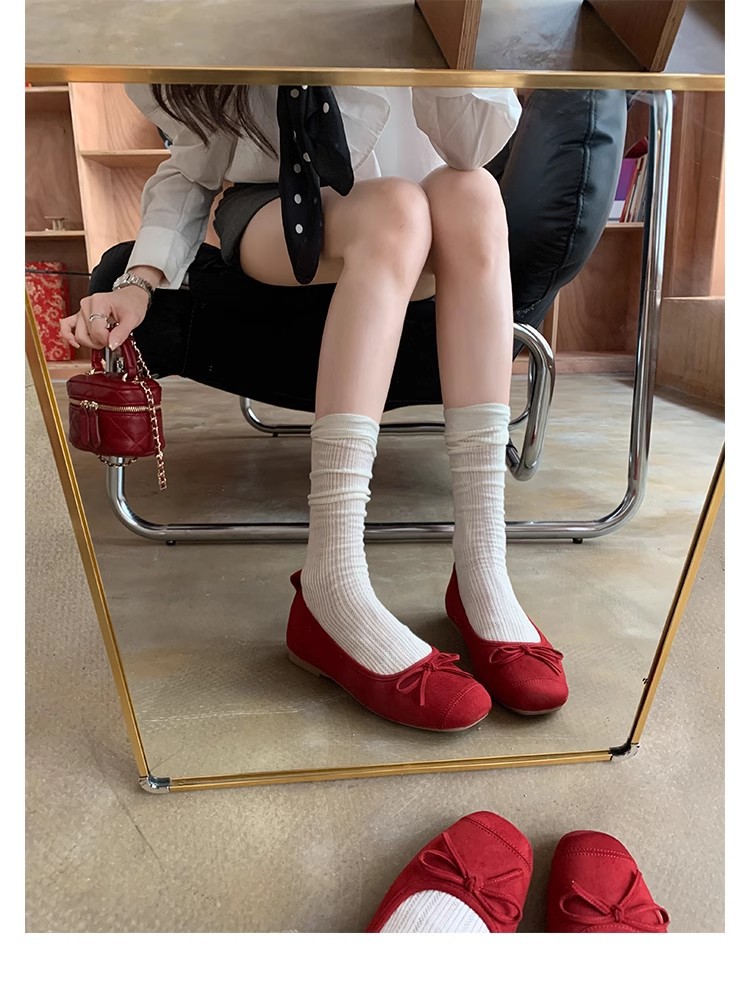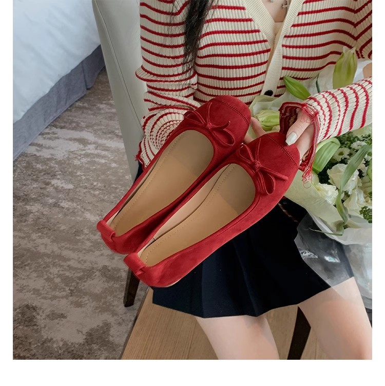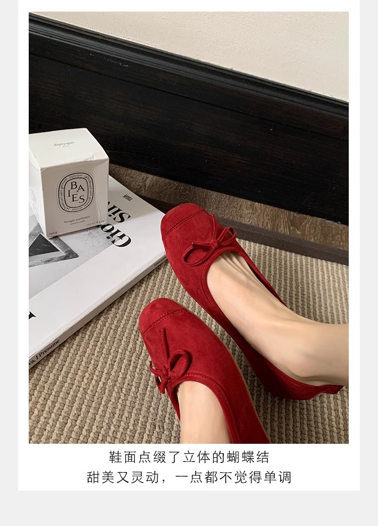 포도 엄마 발레 스타일 활 스퀘어 라운드 헤드 소프트 스웨이드 얕은 입 신발 여성 메리 제인 사계절 레드 플랫 바닥