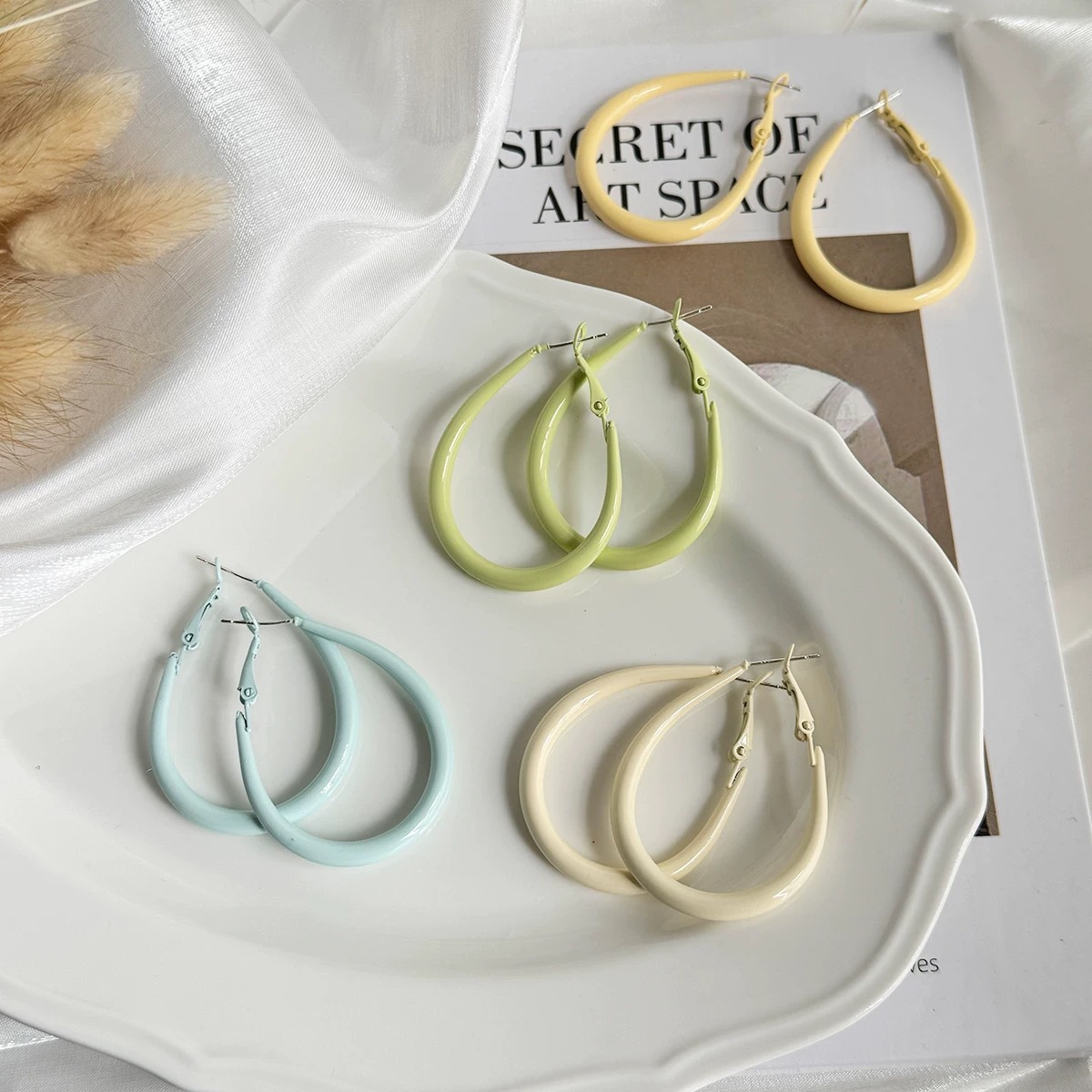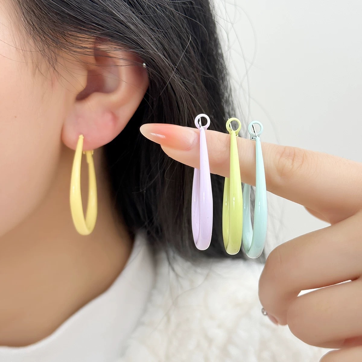 2025 새로운 도파민 타원형 물방울 귀걸이 달콤한 패션 귀걸이 간단한 작은 신선한 여성용 귀걸이