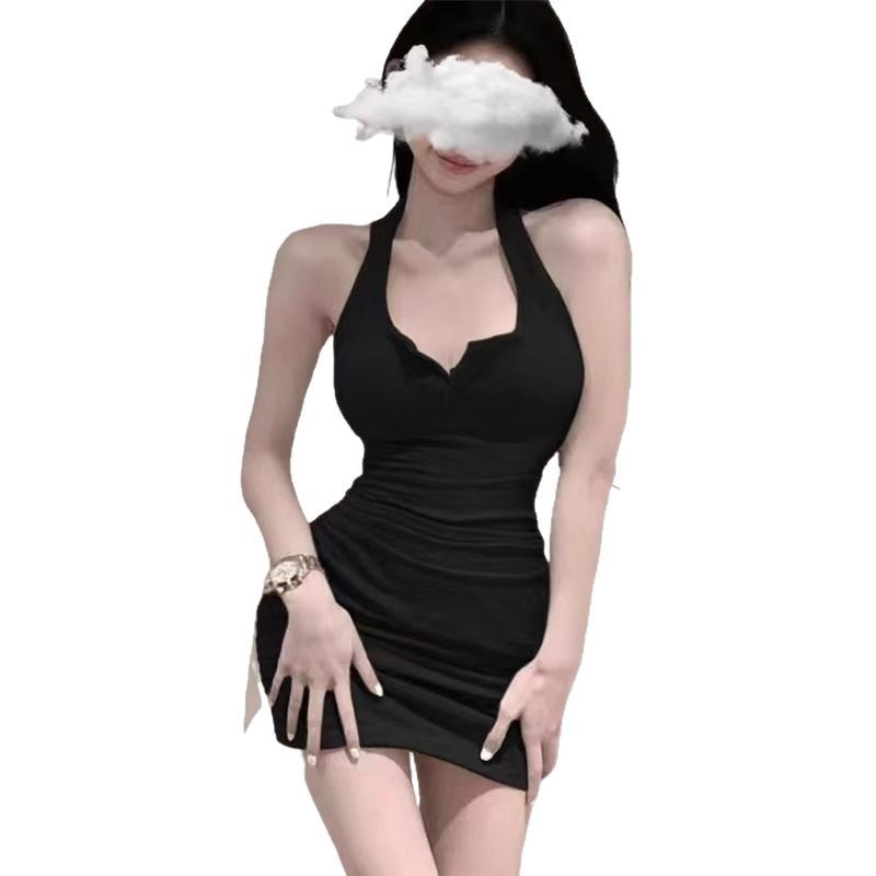 섹시한 속옷, 열정적이고 핫한 유니폼, 유혹, 슬림핏, 엉덩이를 덮는 홀터넥 잠옷, 작은 가슴이 더 커 보이고 오픈 파일, 탈착 불가