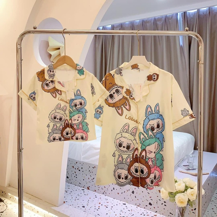 귀여운 만화 소녀 잠옷 세트 여름 새로운 카디건 반팔 반바지 여름 홈 옷 두 조각 세트 봄과 가을