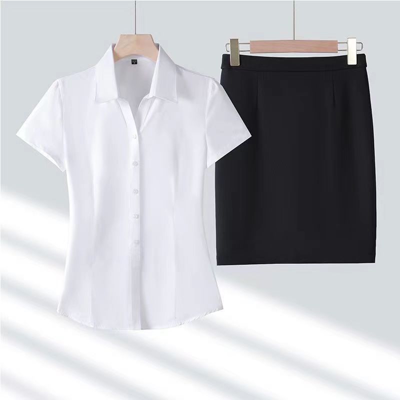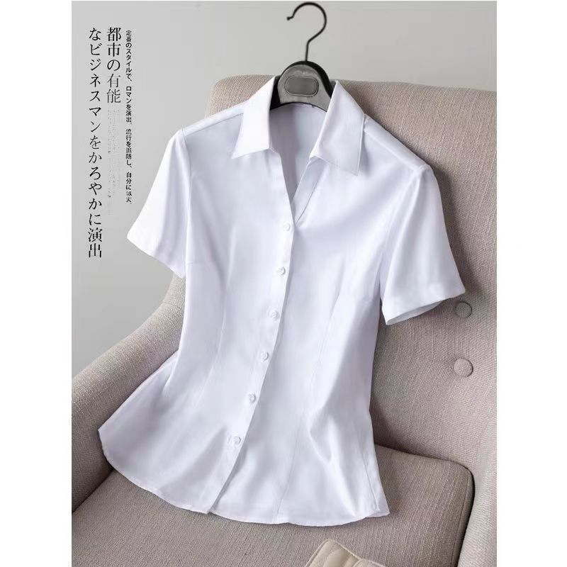 화이트 셔츠 여성용 V 넥 반팔 여름 새로운 신속 건조 하이 엔드 쉬폰 슬림 핏 슬리밍 전문 원피스 OL 작업 옷