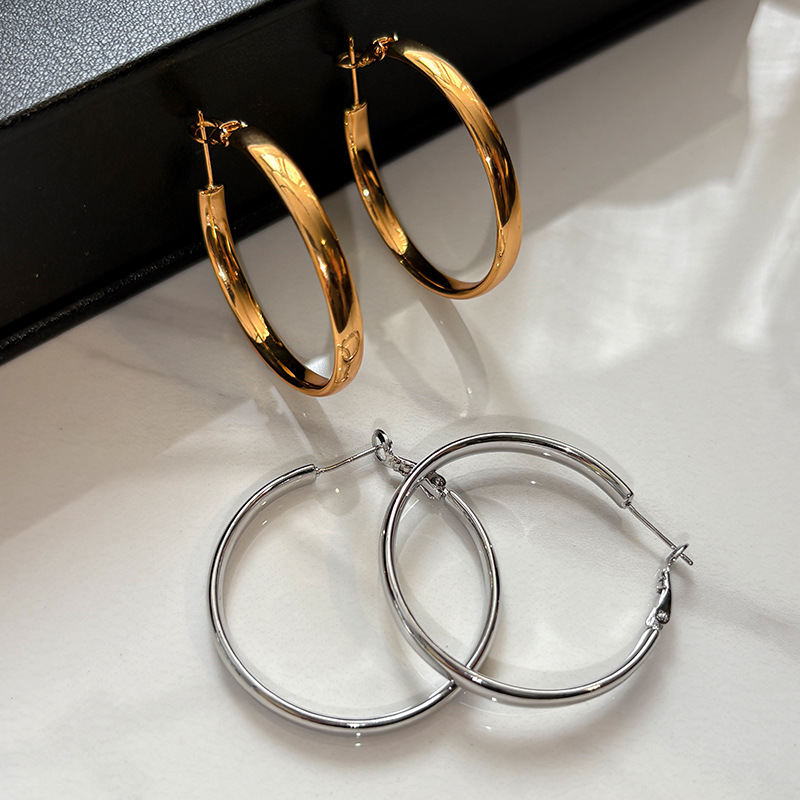 S925 실버 Zhao Lusi의 같은 스타일의 금속 후프 귀걸이 여성용 후프 클래식 패션 기질 과장된 귀걸이