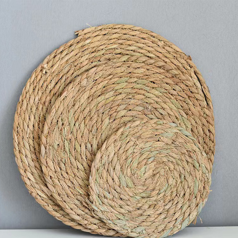 가정용 손으로 짠 Placemat 일본식 목회 티 컵 절연 매트 식사 테이블 커피 테이블 밀짚 라운드 볼 매트