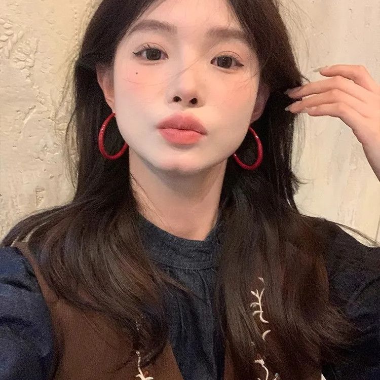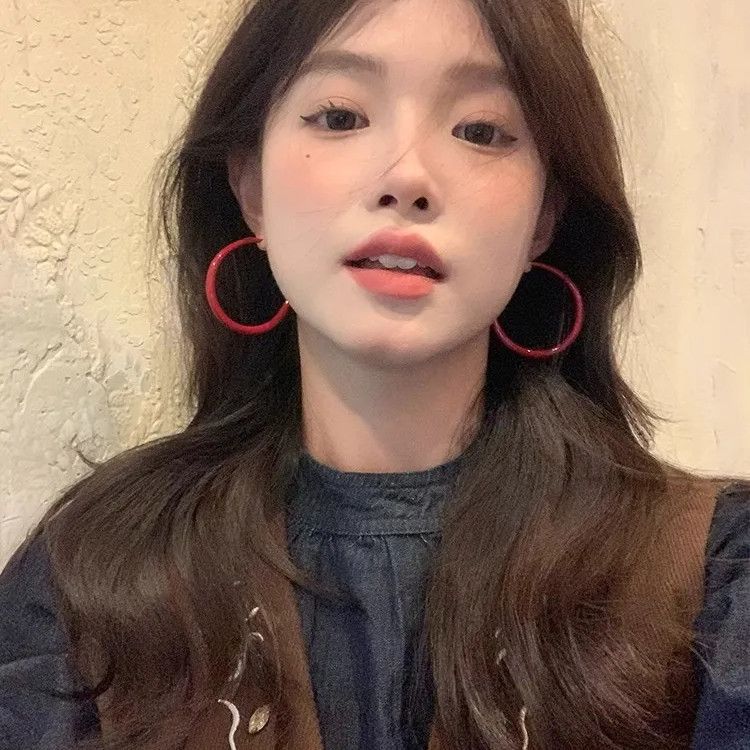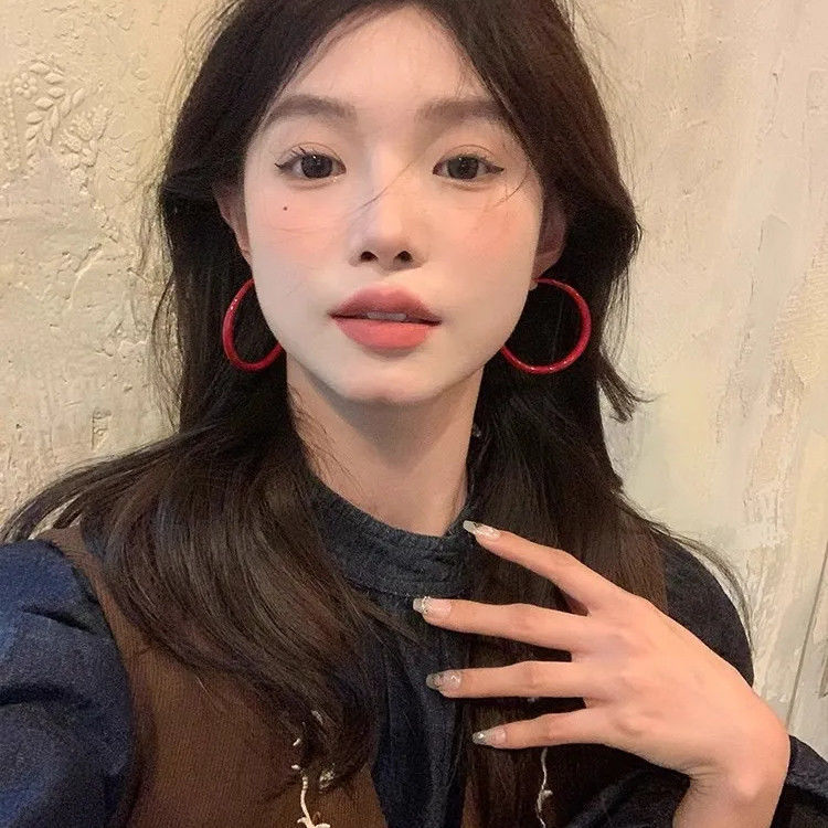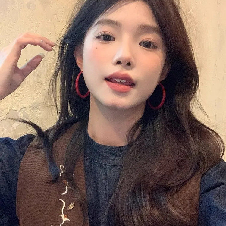 [내 얼굴은 둥글다] 레트로 홍콩 스타일 붉은 기름 떨어지는 큰 귀 반지 우아한 귀 클립 가을과 겨울 앙코라 붉은 귀걸이