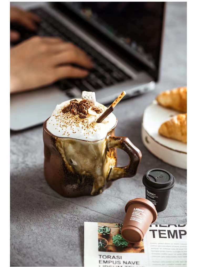 손으로 만든 일본식 레트로 머그컵 예술 컵 세라믹 핸드드립 물컵 차컵 정교한 수공예