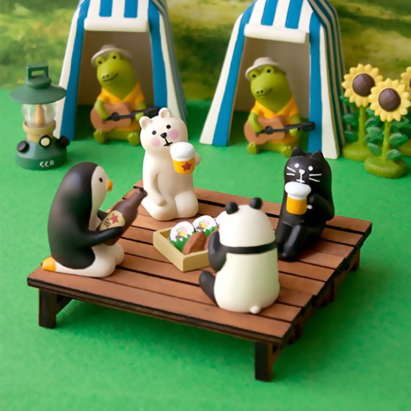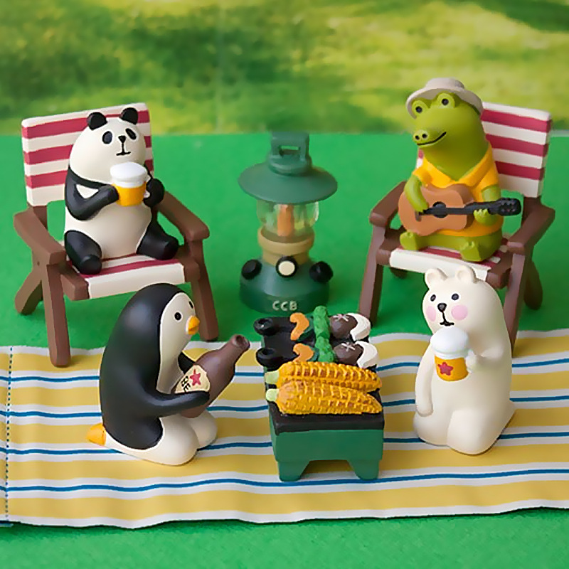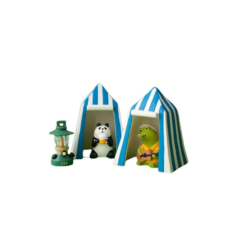 동물 행복한 캠핑 의자 의자 바베큐 텐트 카메라 파티 수지 공예 장식품