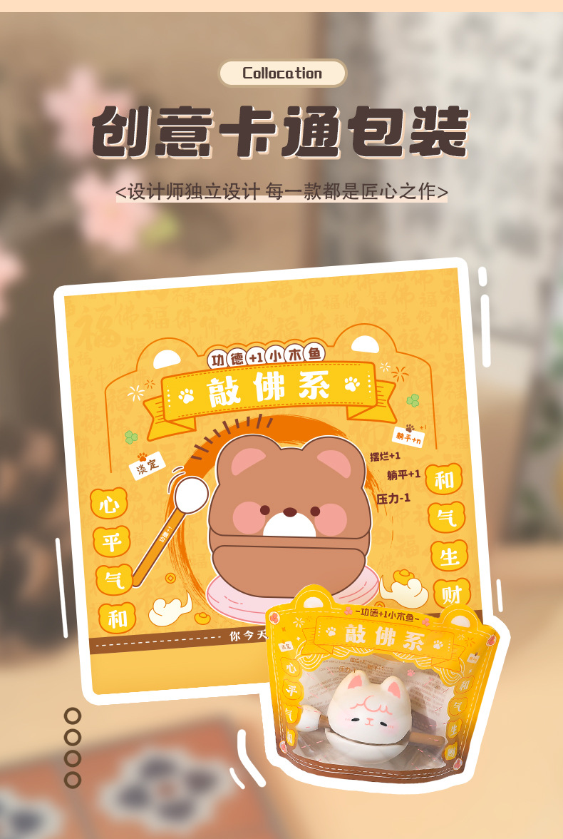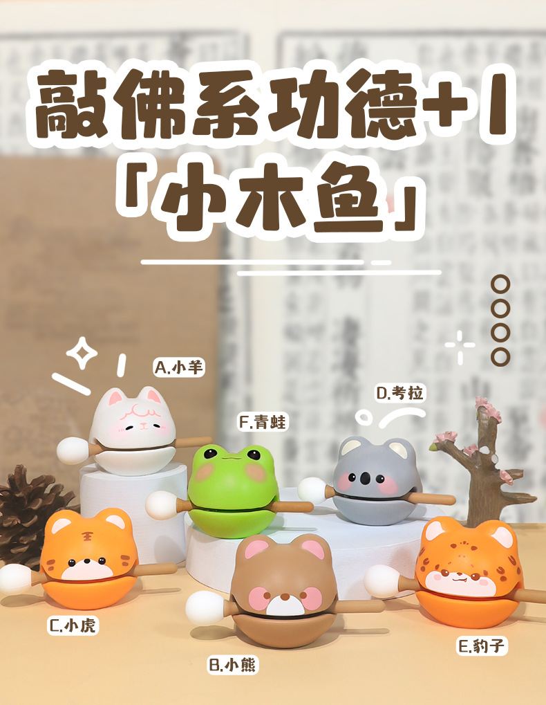 불교공덕+1 작은 나무 물고기 감압장식품, 사무실 워크스테이션, 감정조절 및 힐링 장난감