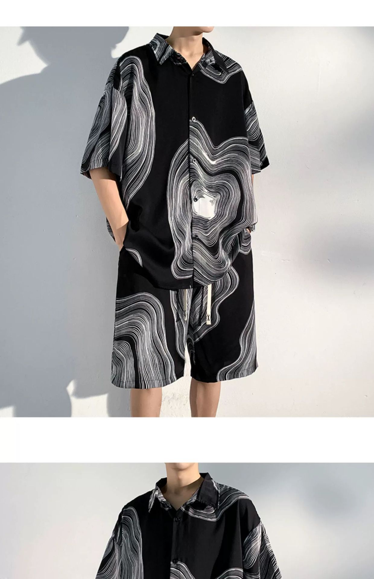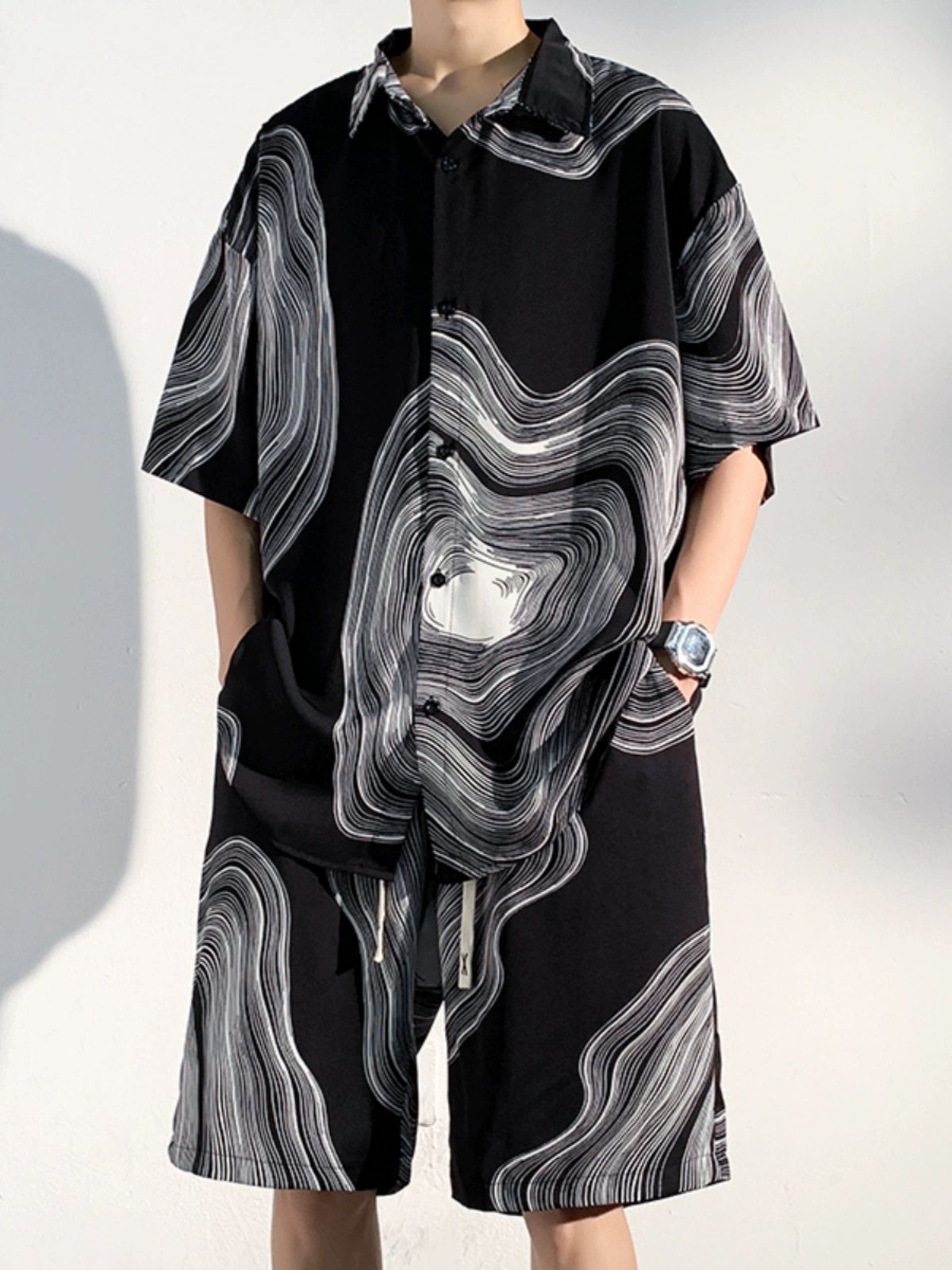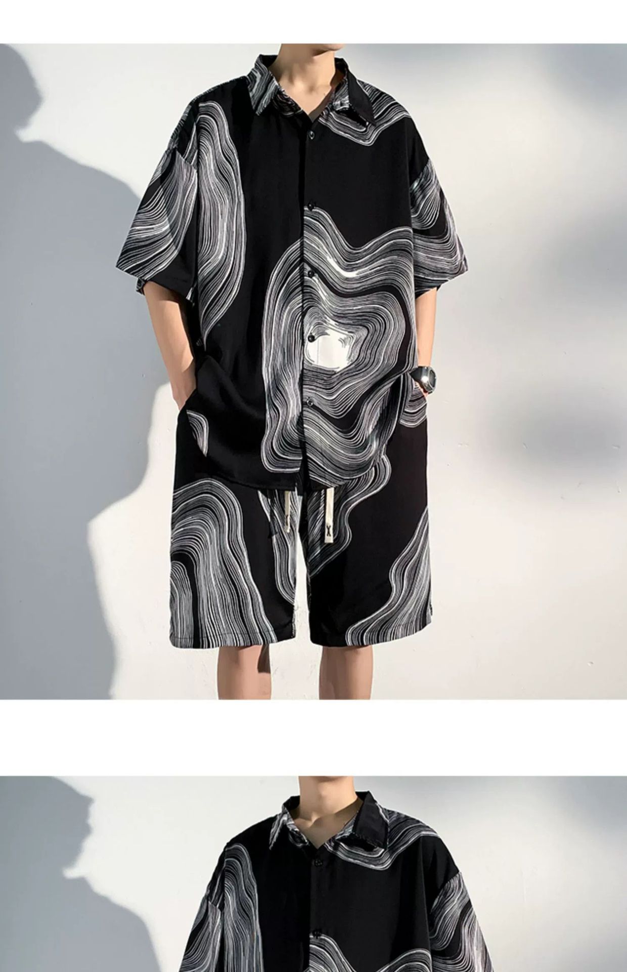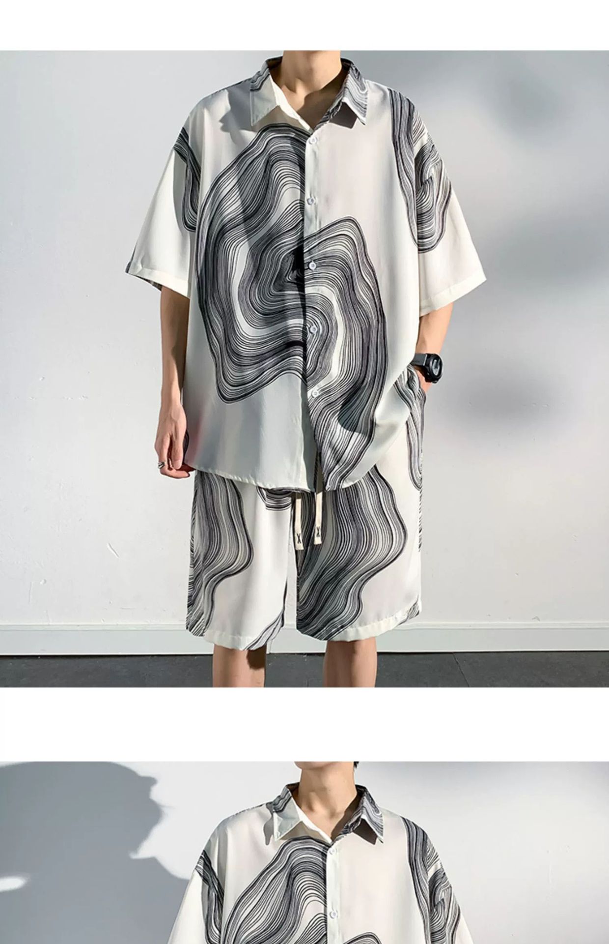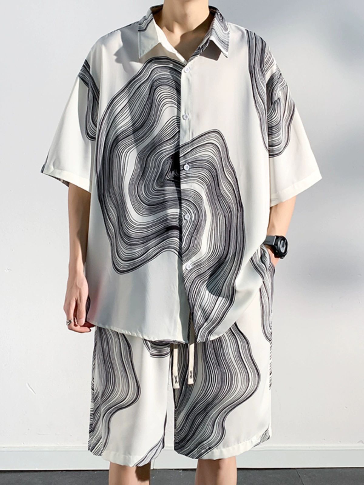 아이스 실크 비치 셔츠와 반바지 남자 여름 세트 2024 새로운 여름 느슨한 플러스 사이즈 남자 캐주얼