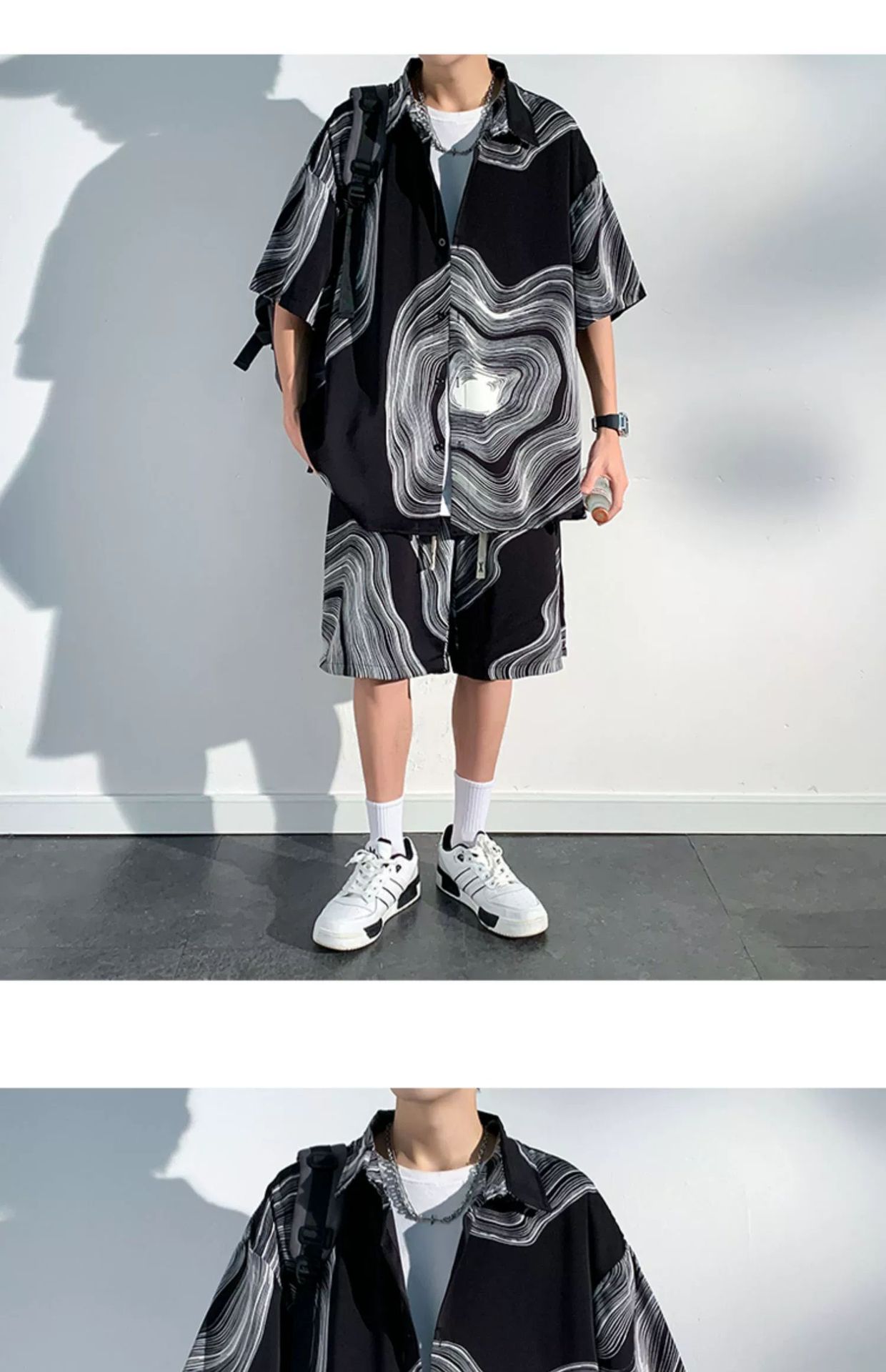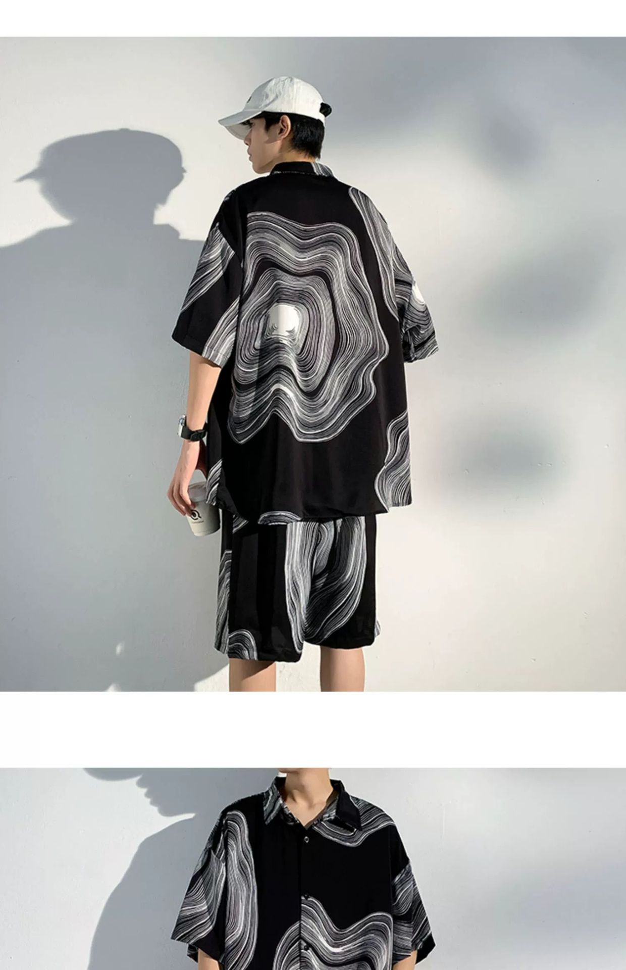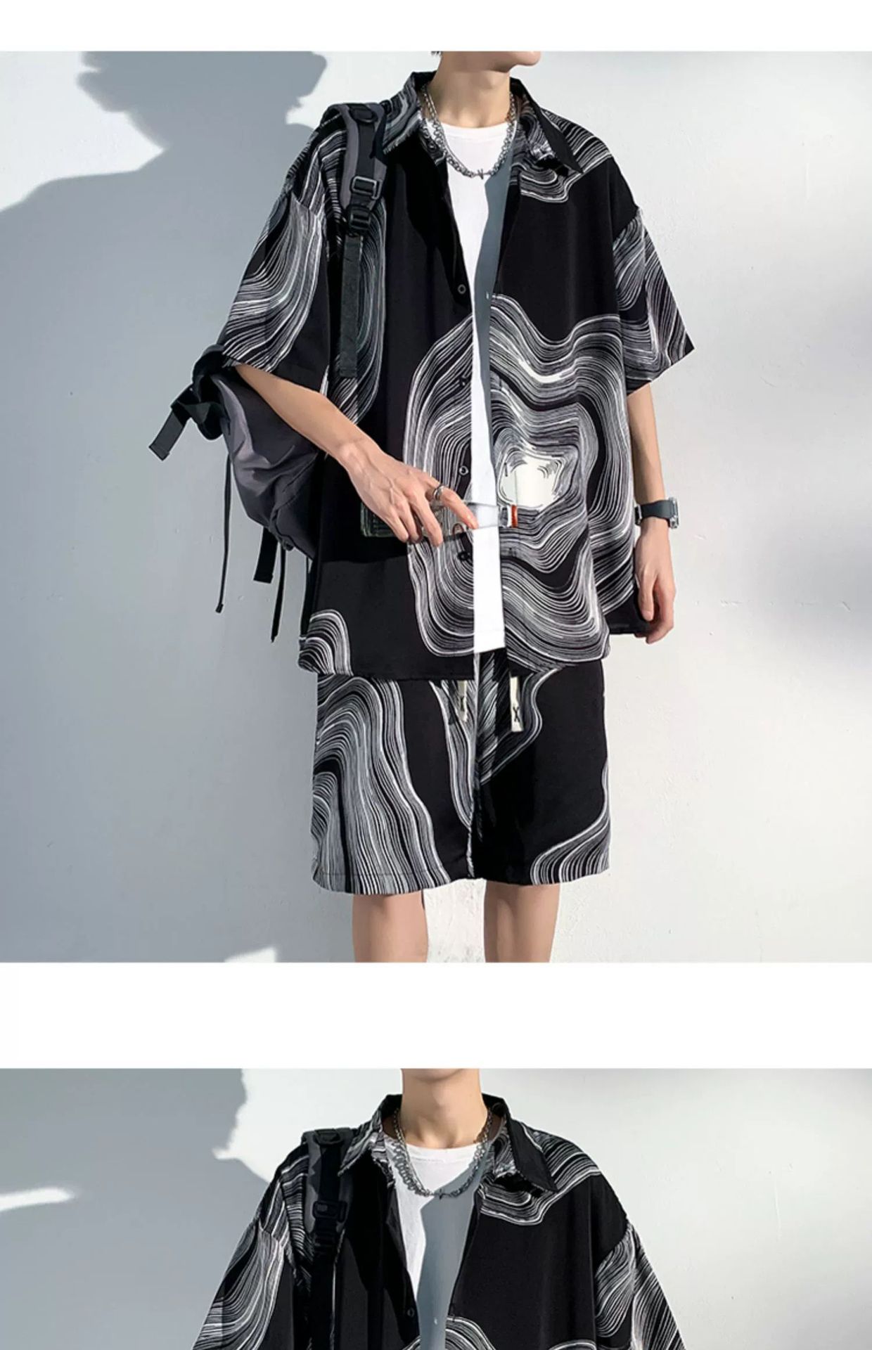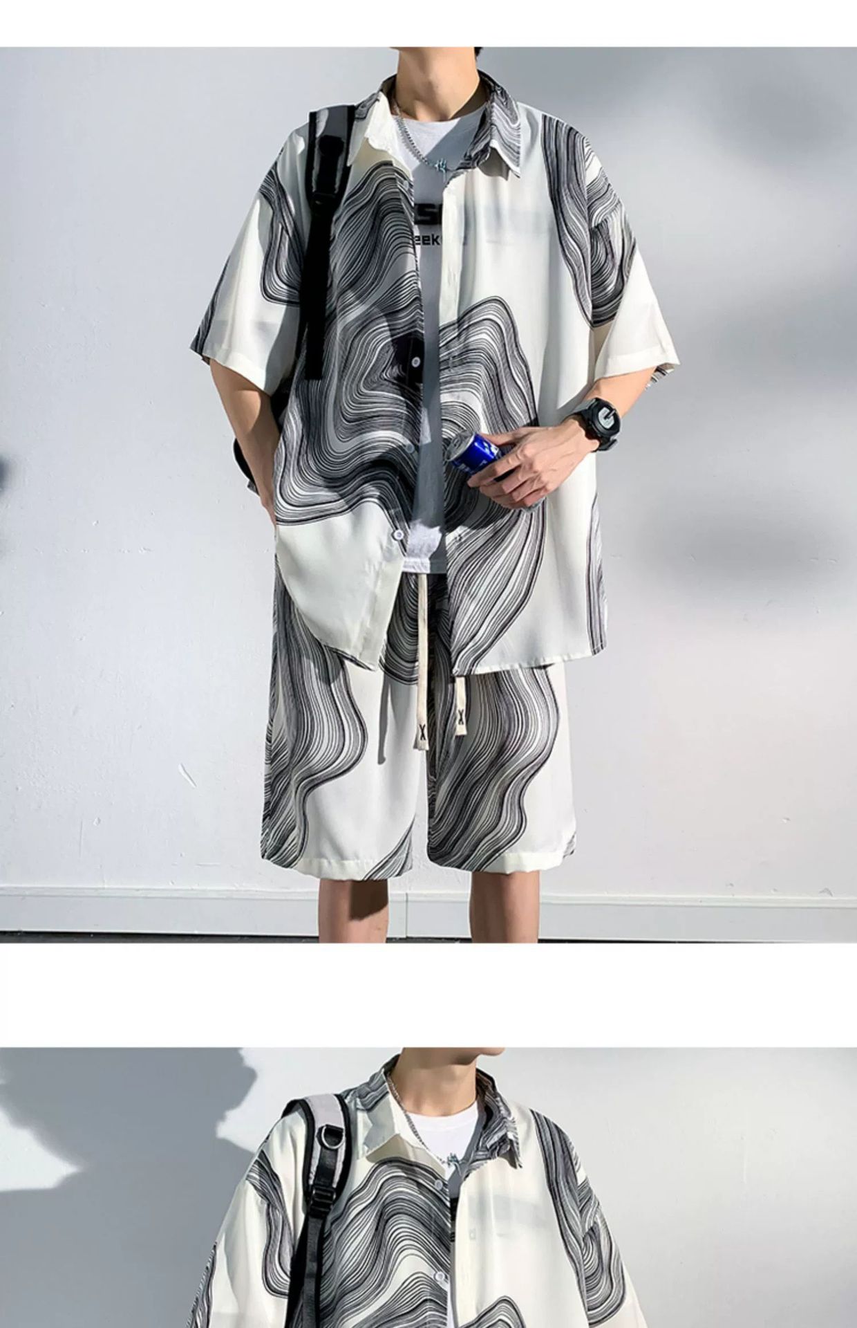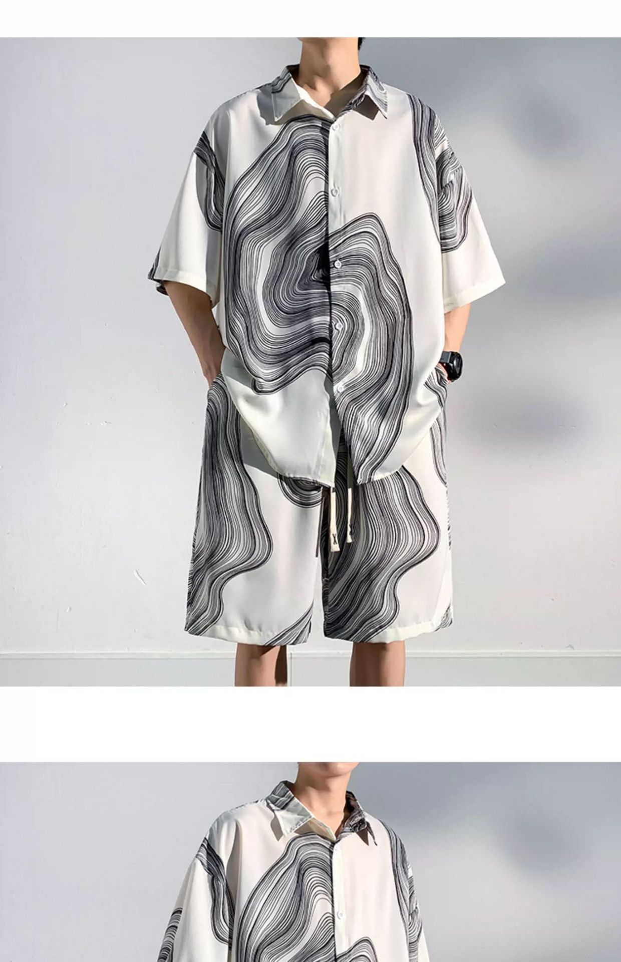 아이스 실크 비치 셔츠와 반바지 남자 여름 세트 2024 새로운 여름 느슨한 플러스 사이즈 남자 캐주얼
