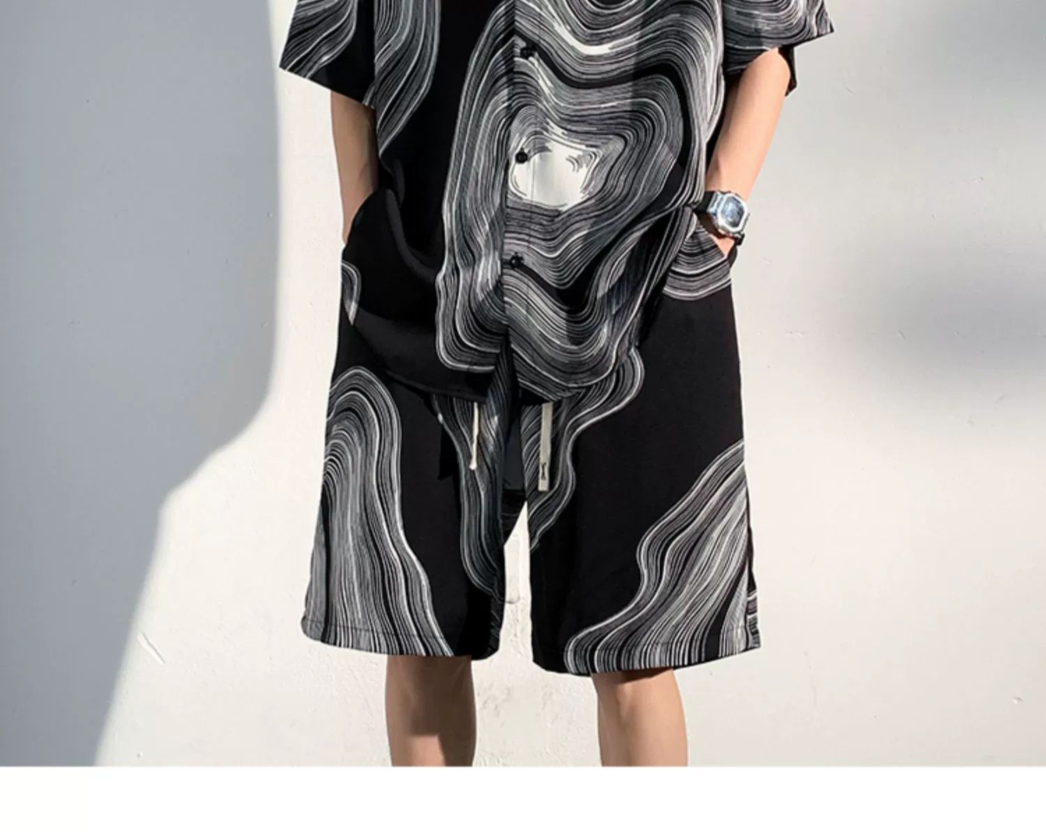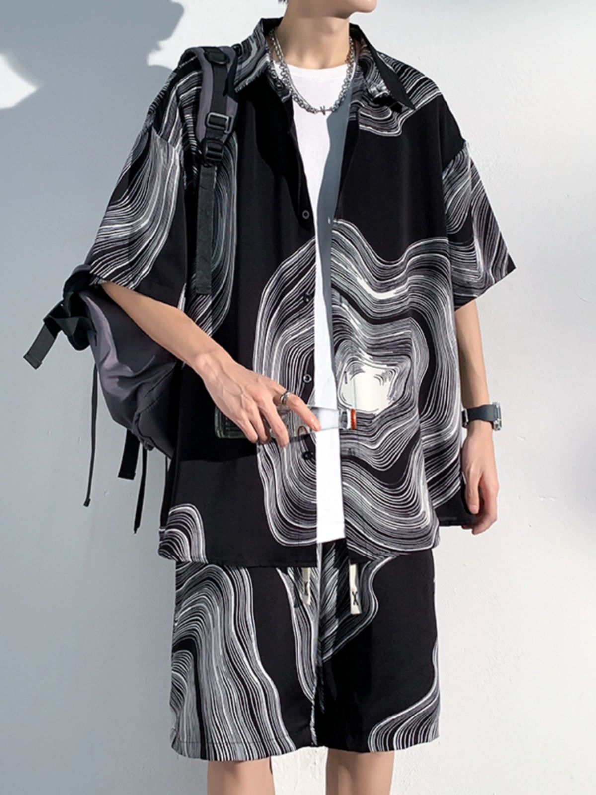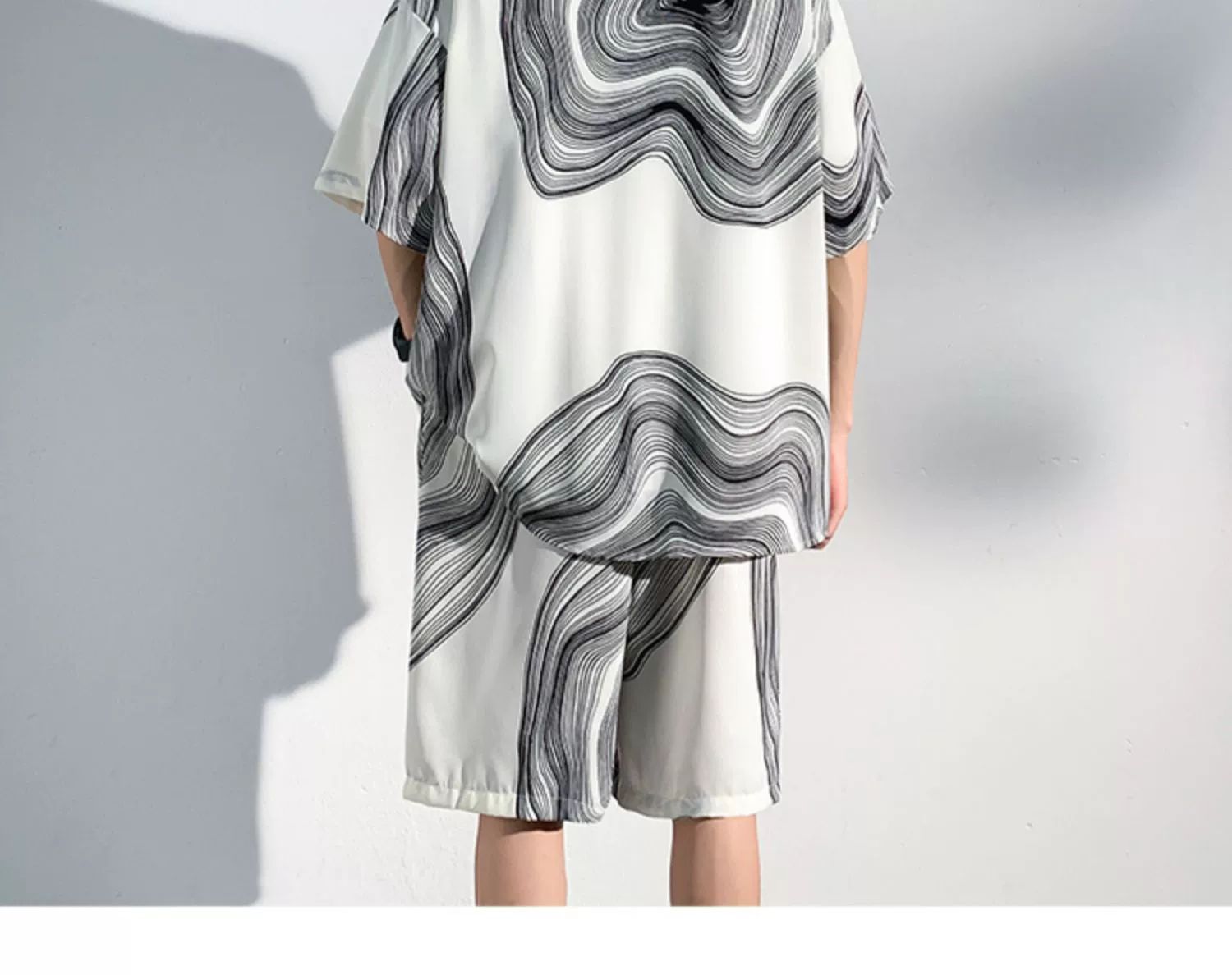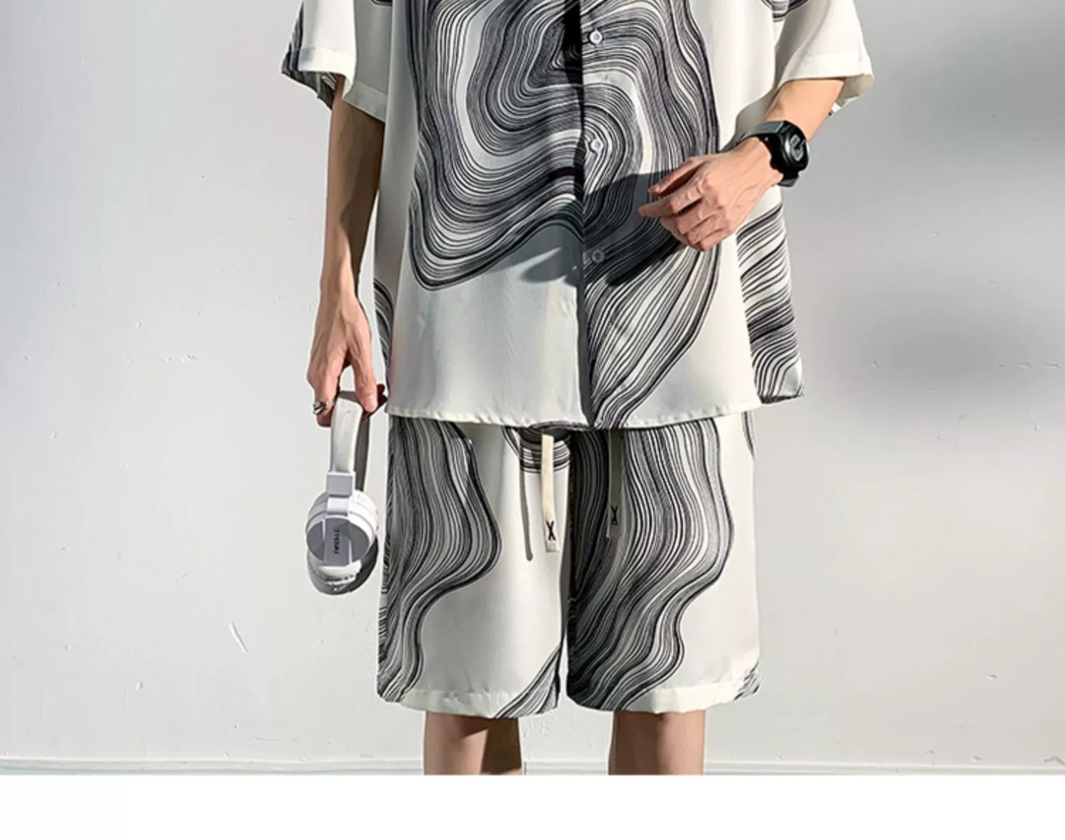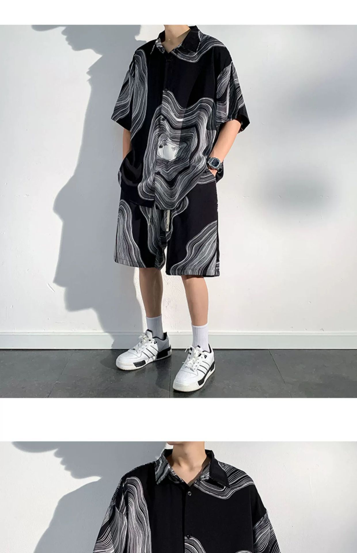 아이스 실크 비치 셔츠와 반바지 남자 여름 세트 2024 새로운 여름 느슨한 플러스 사이즈 남자 캐주얼