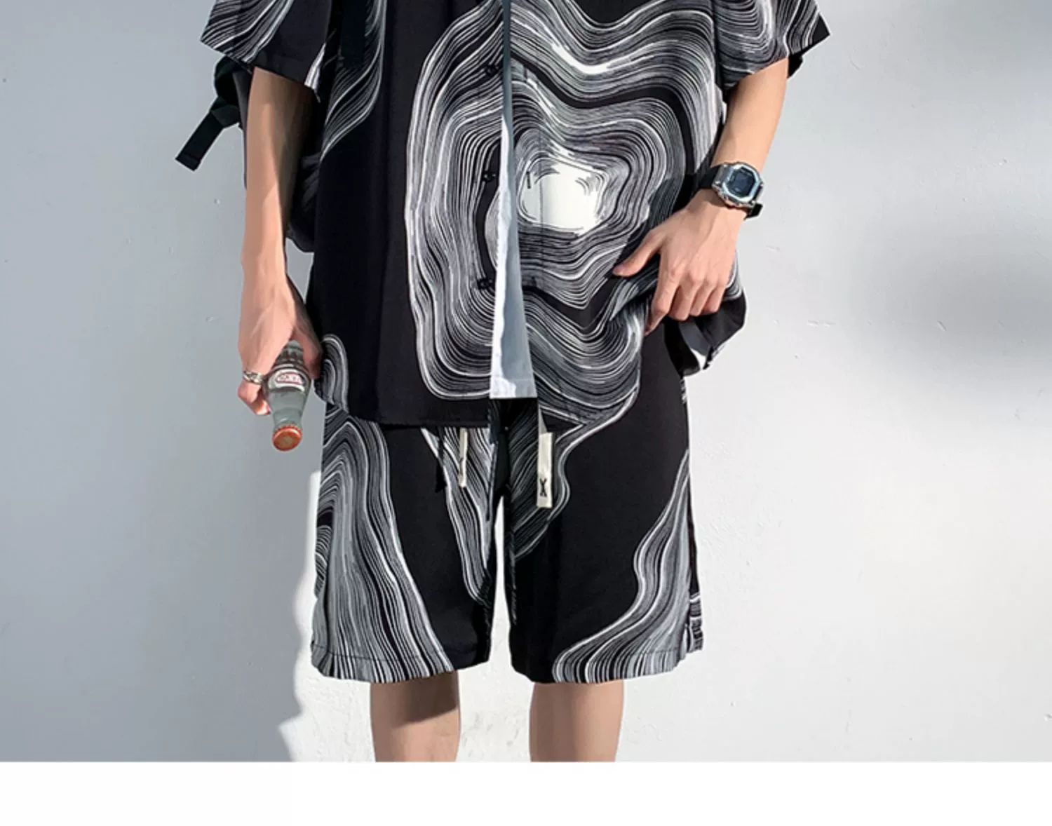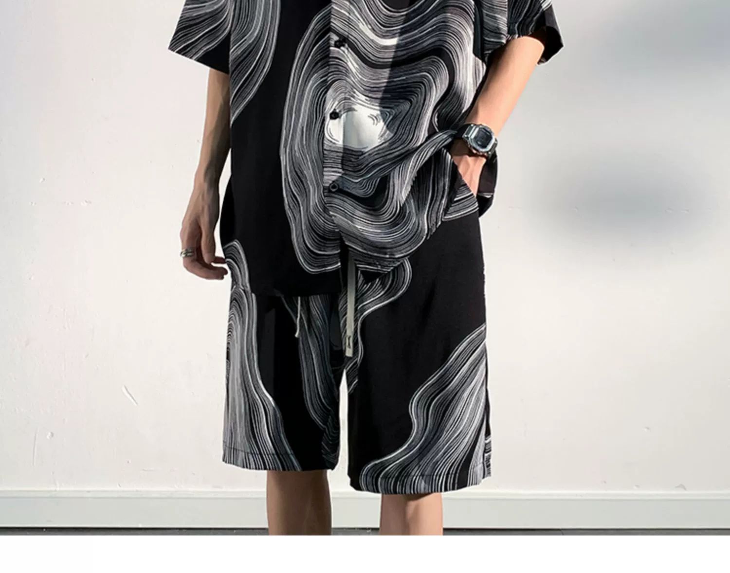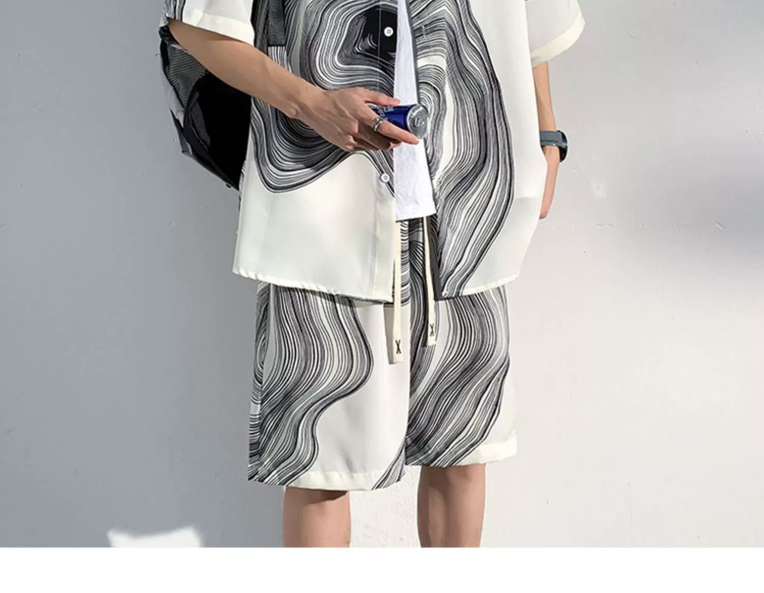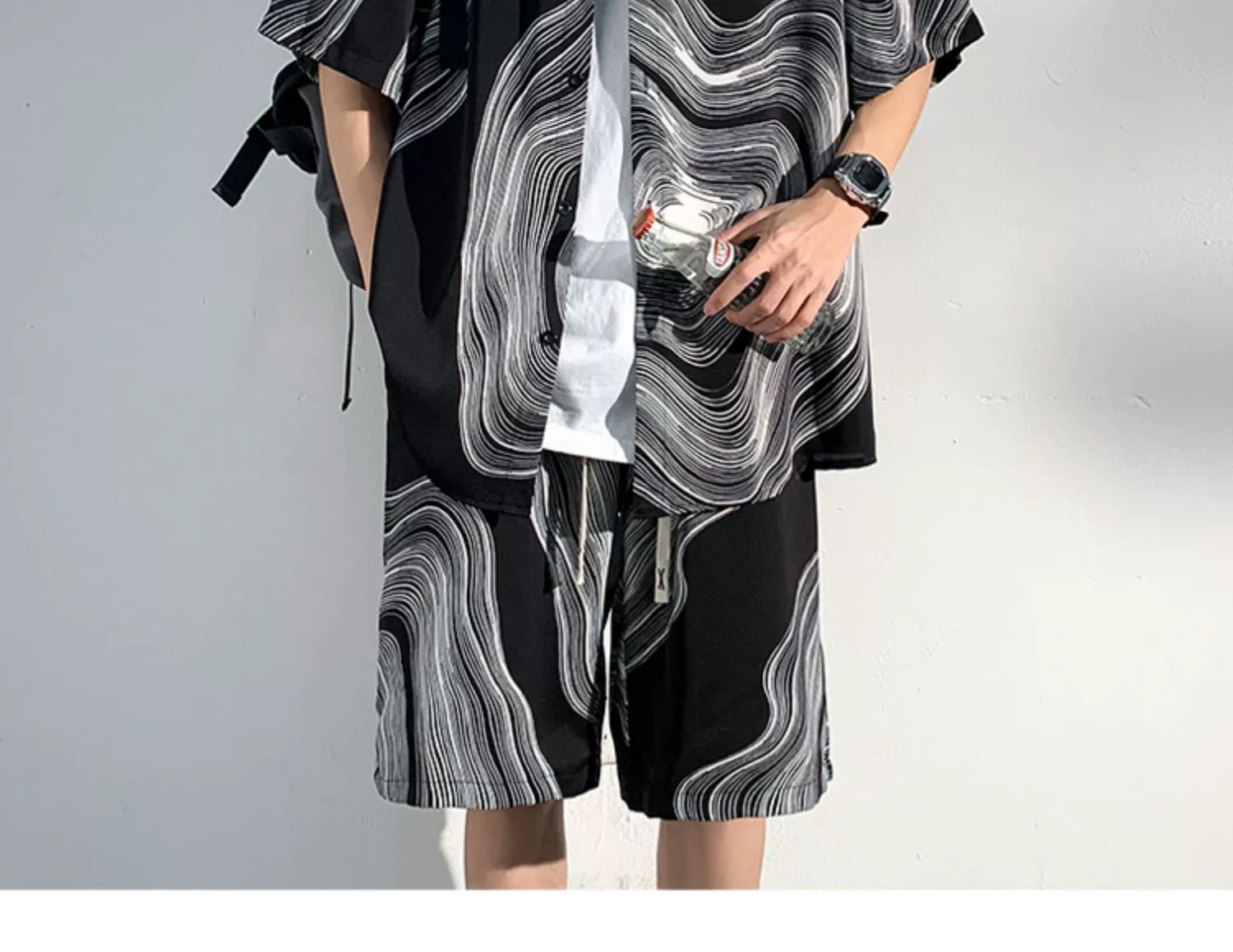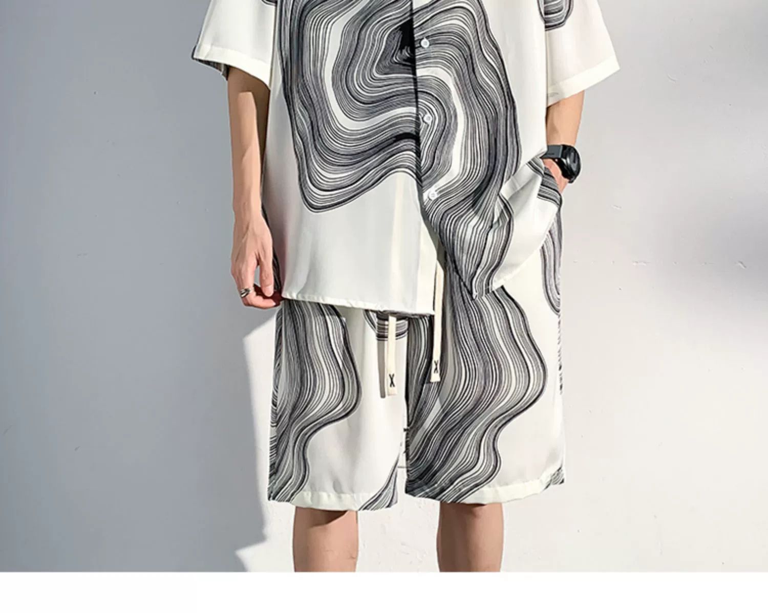 아이스 실크 비치 셔츠와 반바지 남자 여름 세트 2024 새로운 여름 느슨한 플러스 사이즈 남자 캐주얼