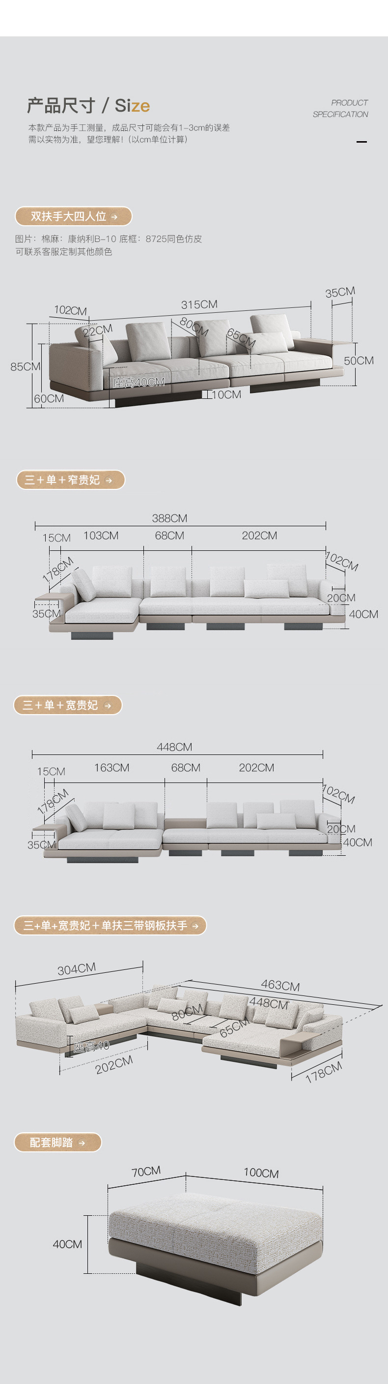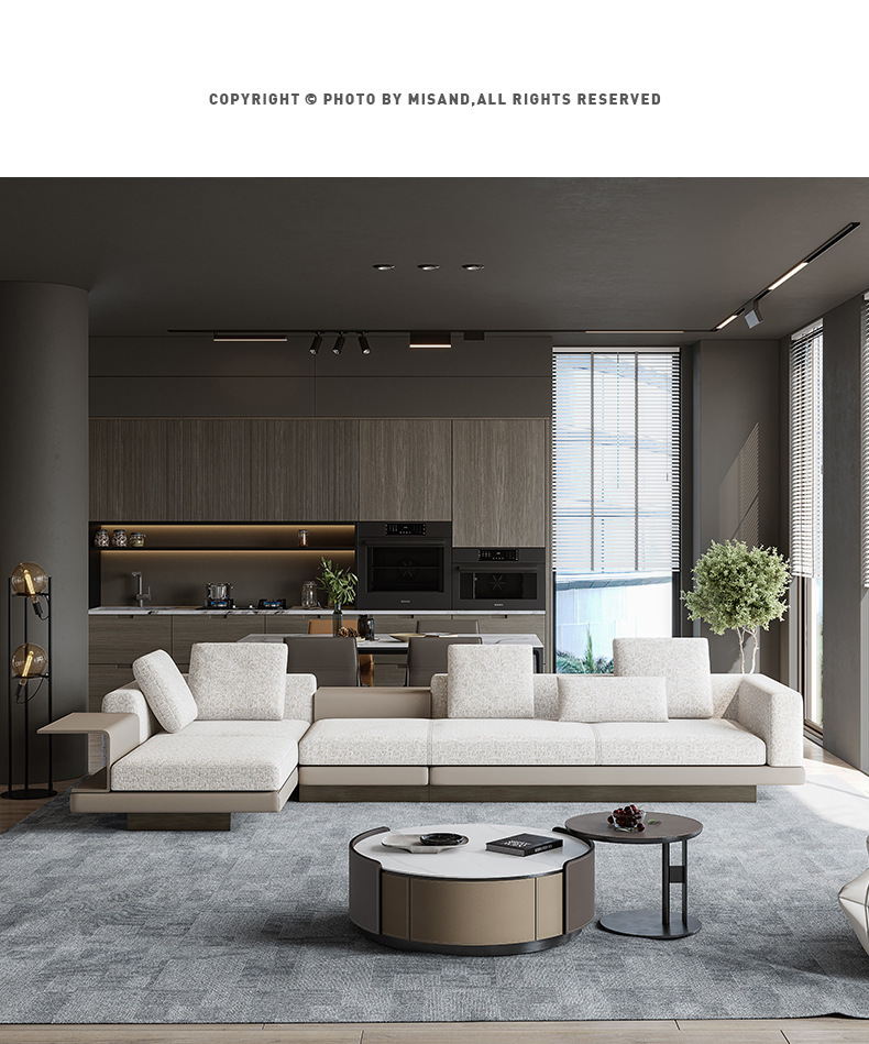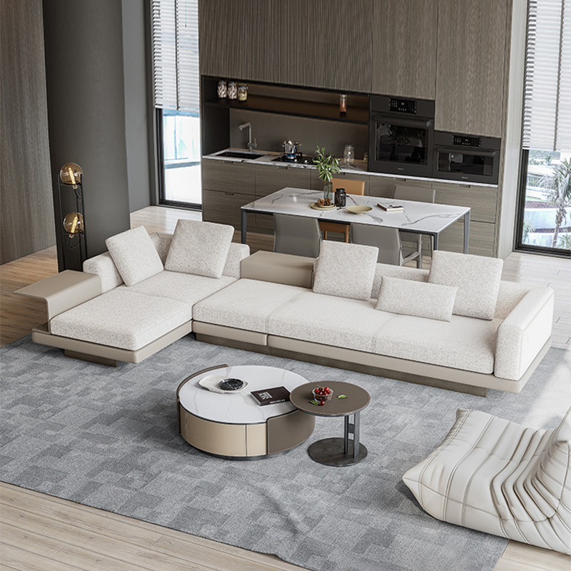 이탈리아 미니멀리스트 코너리 면 리넨 원단 소파 현대 간단한 조합 거실 가구 크고 작은 아파트