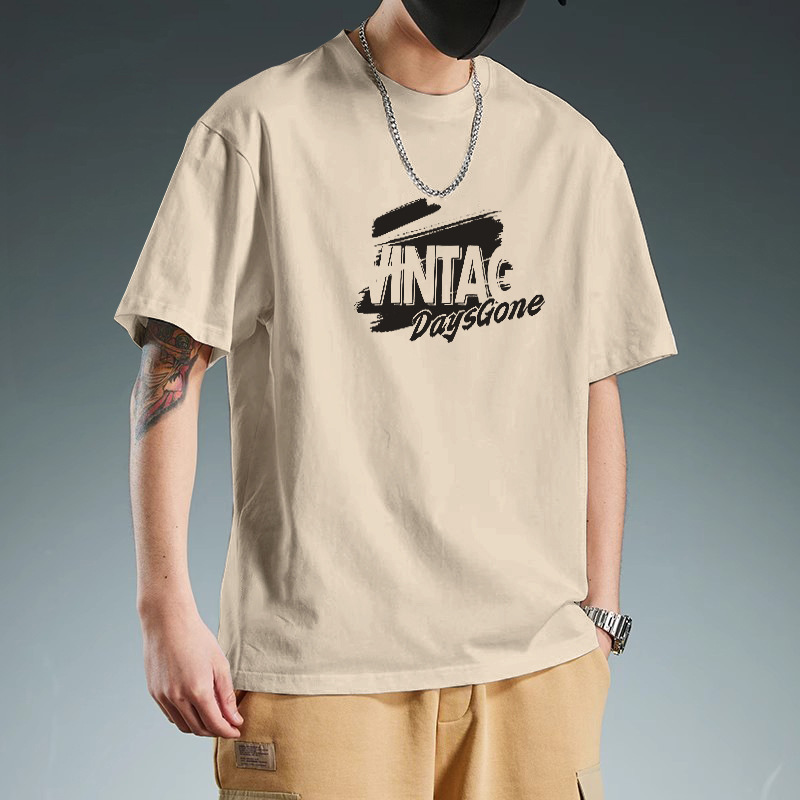 헤비 코튼 솔리드 컬러 반팔 티셔츠 남성용 코튼 라운드 넥 베이스 셔츠 트렌디 브랜드 화이트 반소매 남성 패션 패턴