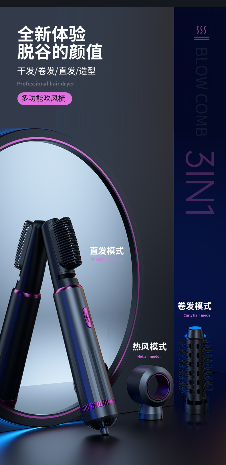【包装清单】直风梳、定型风嘴、卷发风嘴、直发风嘴、