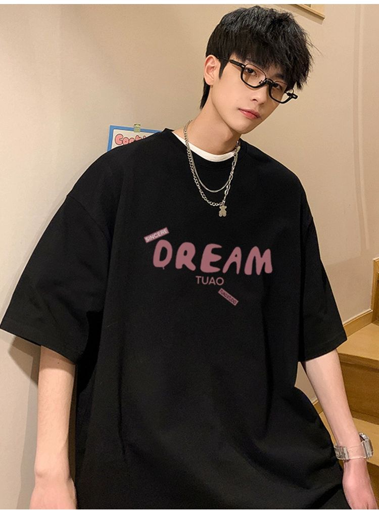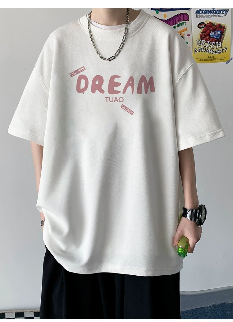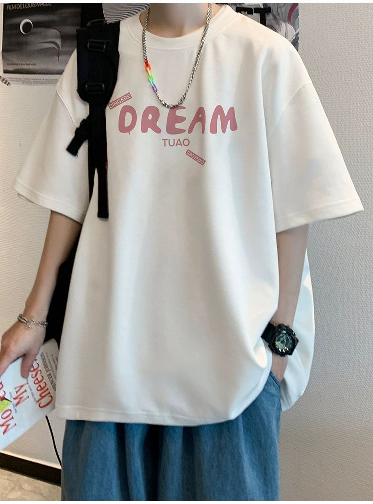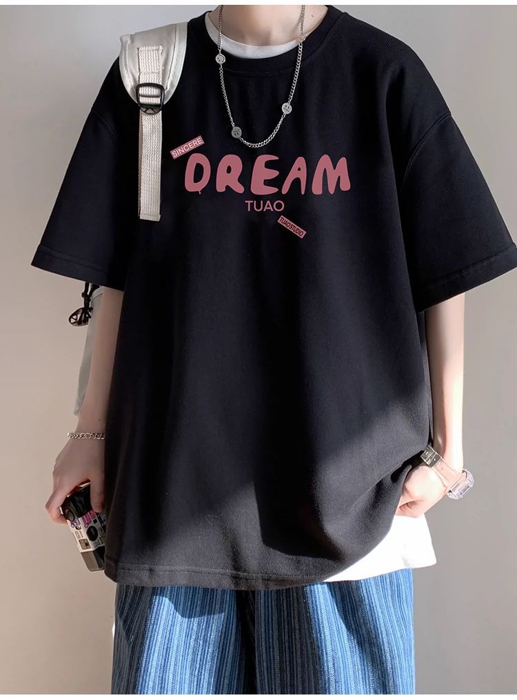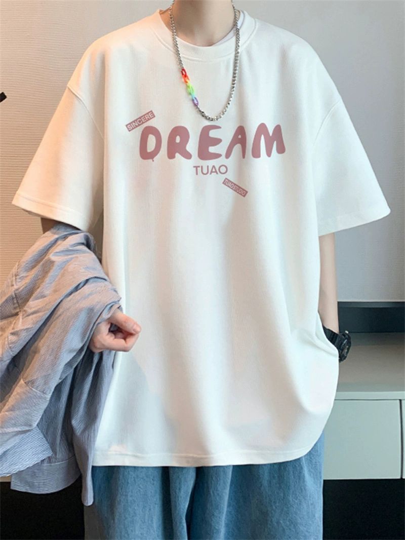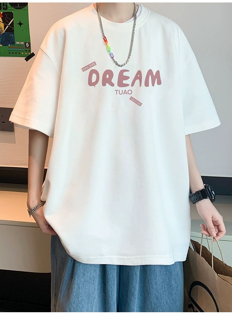 100% 면 반팔 남성 여름 신작 레터 프린트 트렌디 브랜드 화이트 바닥 셔츠 탑 잘 생긴 청소년