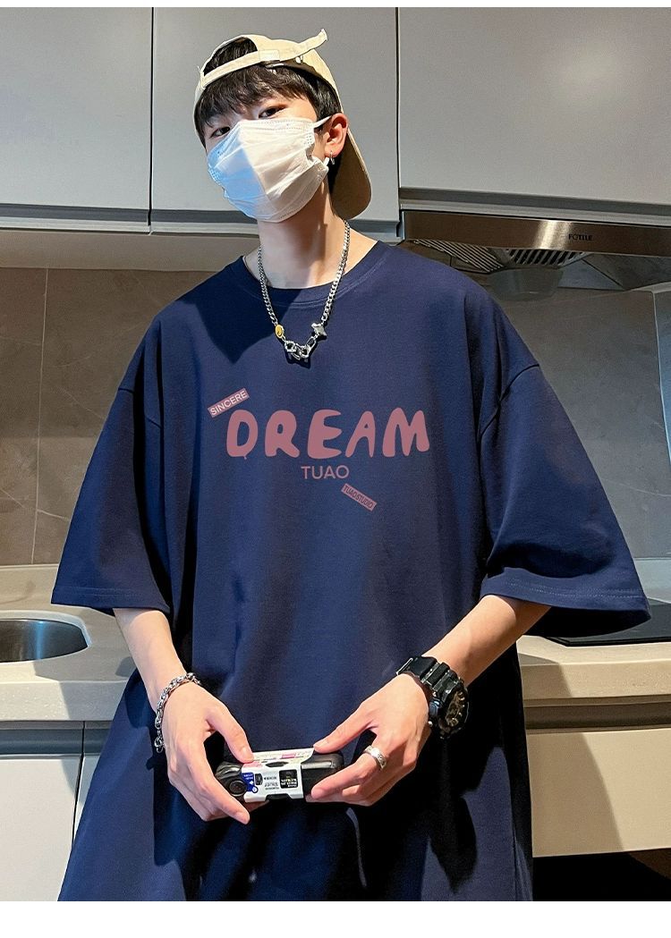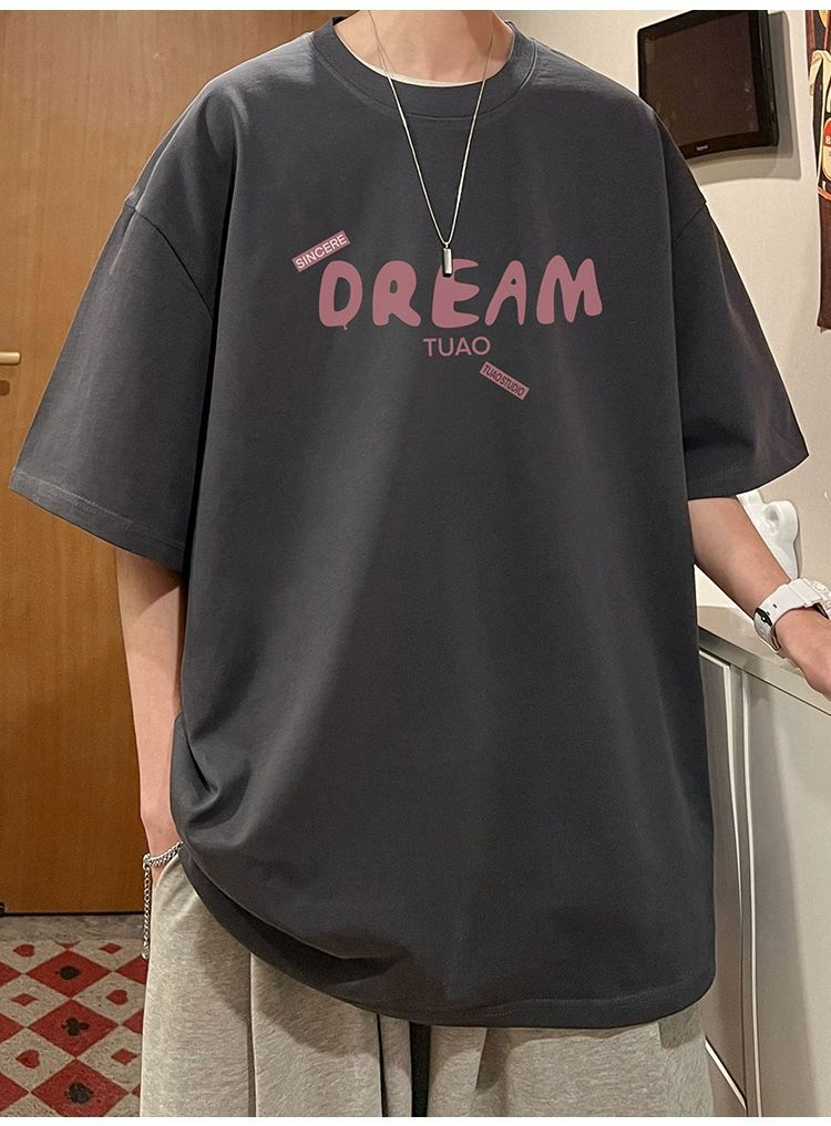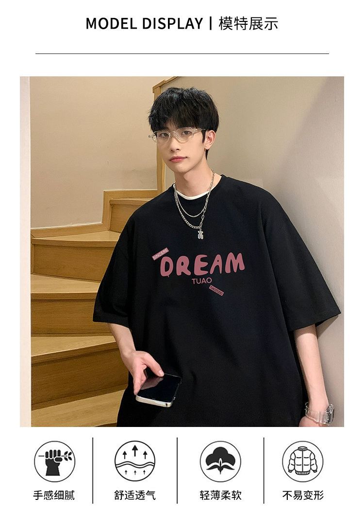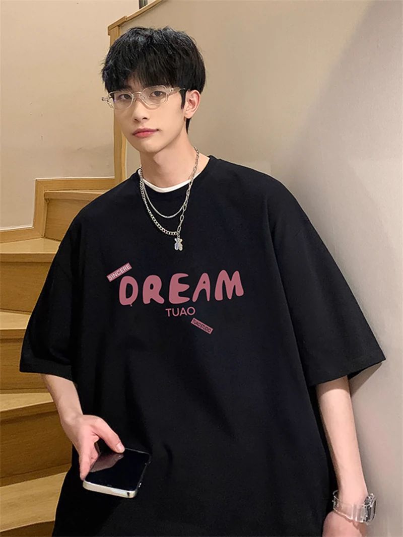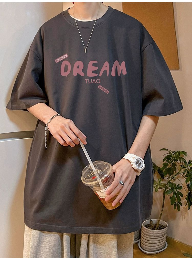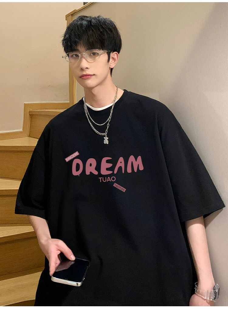 100% 면 반팔 남성 여름 신작 레터 프린트 트렌디 브랜드 화이트 바닥 셔츠 탑 잘 생긴 청소년