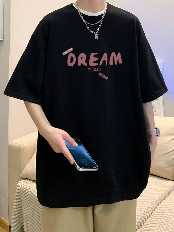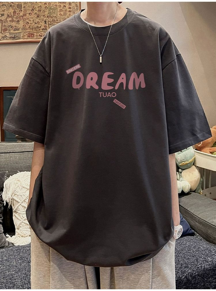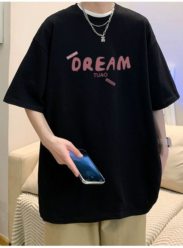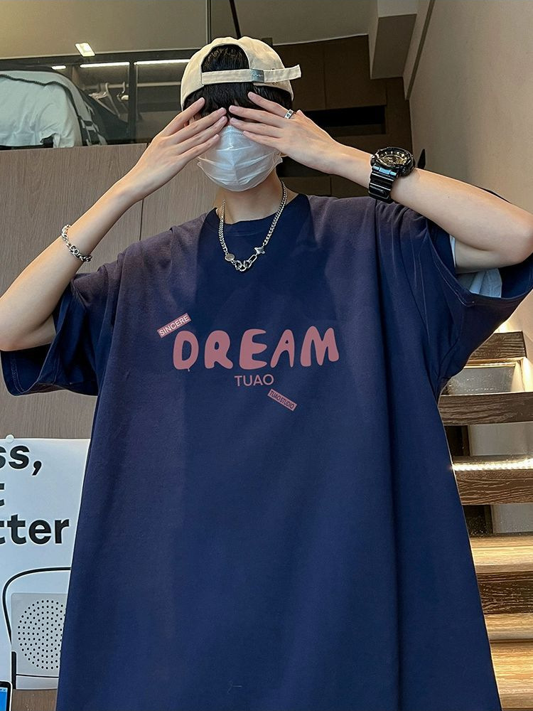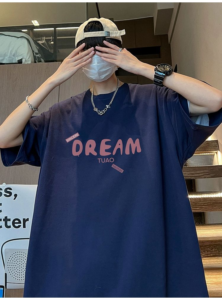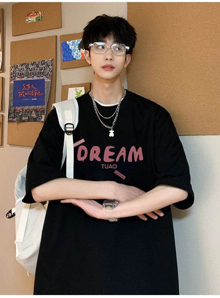 100% 면 반팔 남성 여름 신작 레터 프린트 트렌디 브랜드 화이트 바닥 셔츠 탑 잘 생긴 청소년