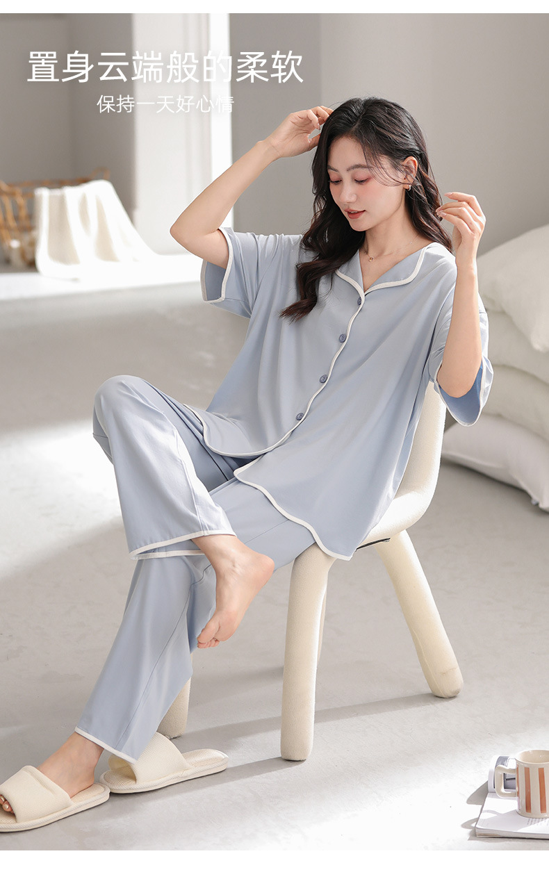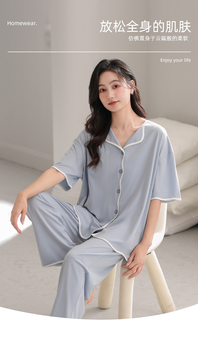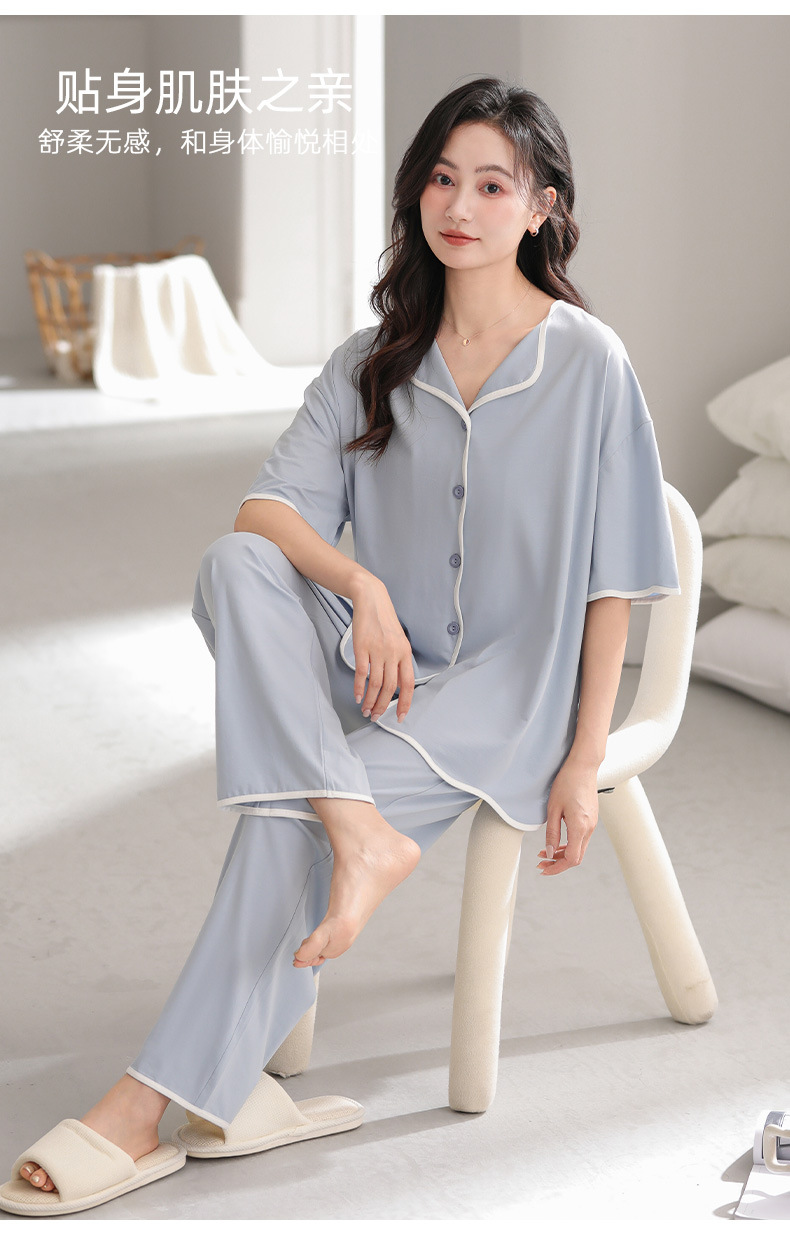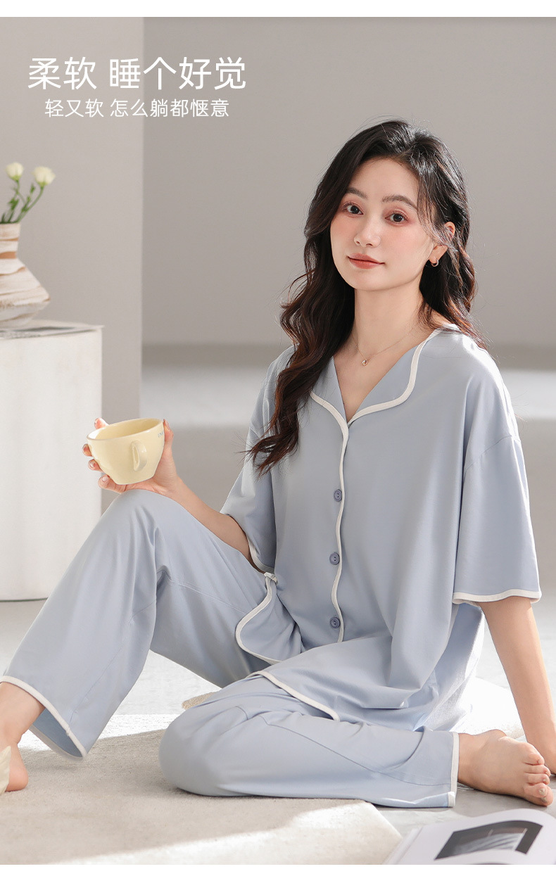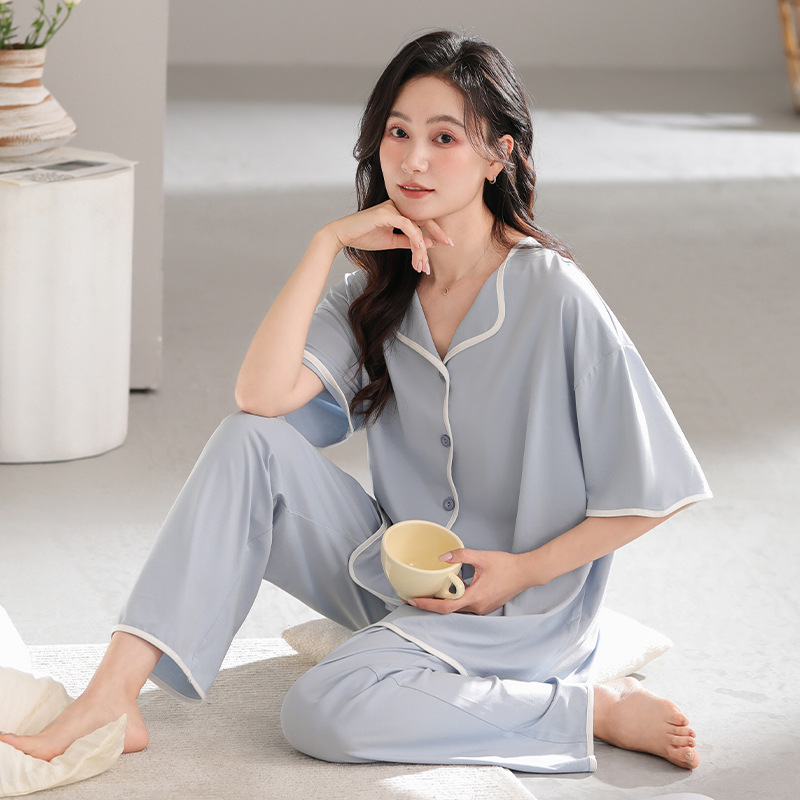 TRC 모달 쿨 카디건 파자마 여성 여름 반팔 심플 외모 입기 얇은 여름 여성 홈 의류