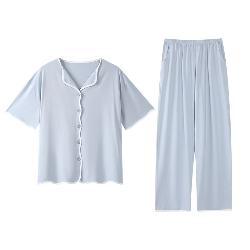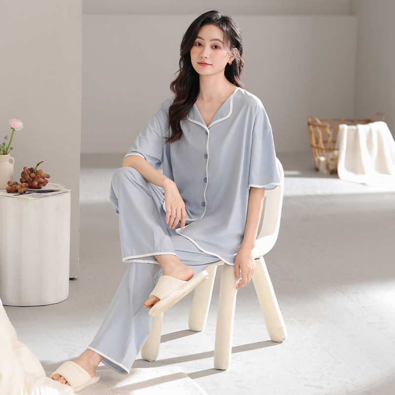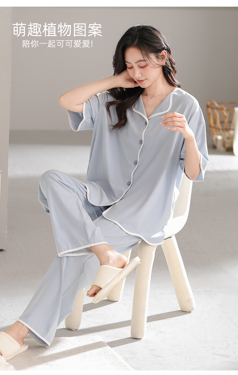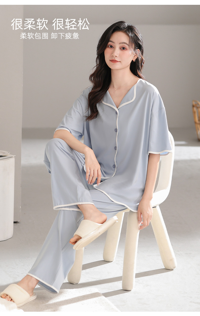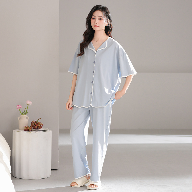 TRC 모달 쿨 카디건 파자마 여성 여름 반팔 심플 외모 입기 얇은 여름 여성 홈 의류