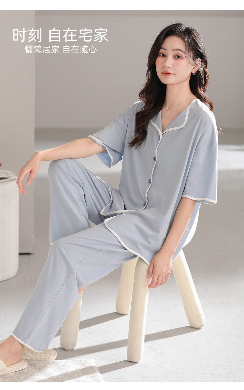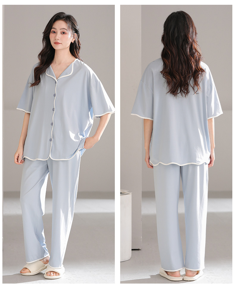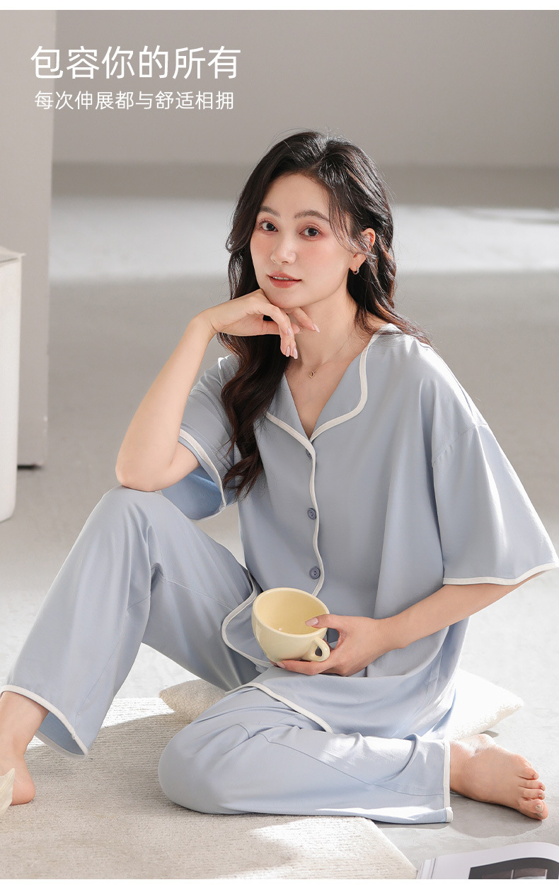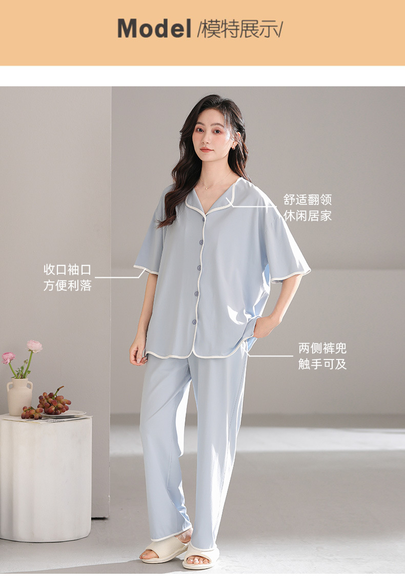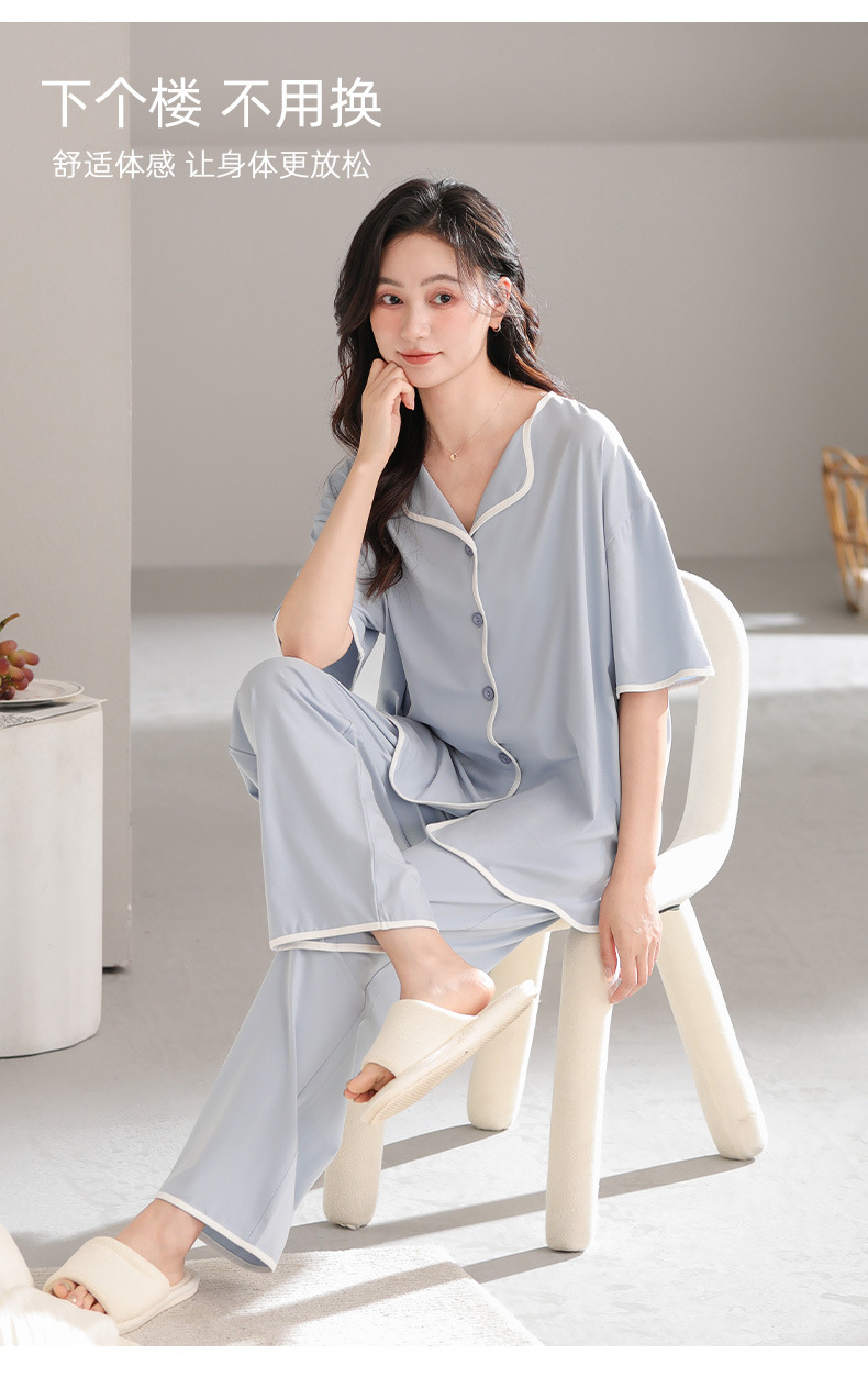 TRC 모달 쿨 카디건 파자마 여성 여름 반팔 심플 외모 입기 얇은 여름 여성 홈 의류
