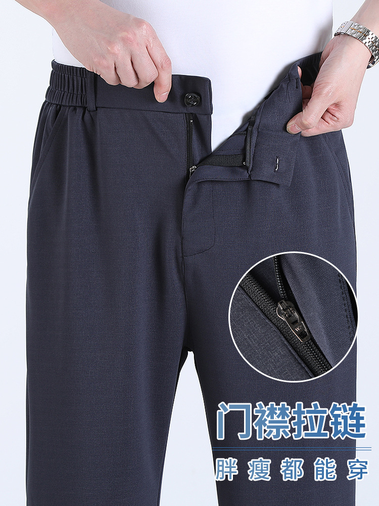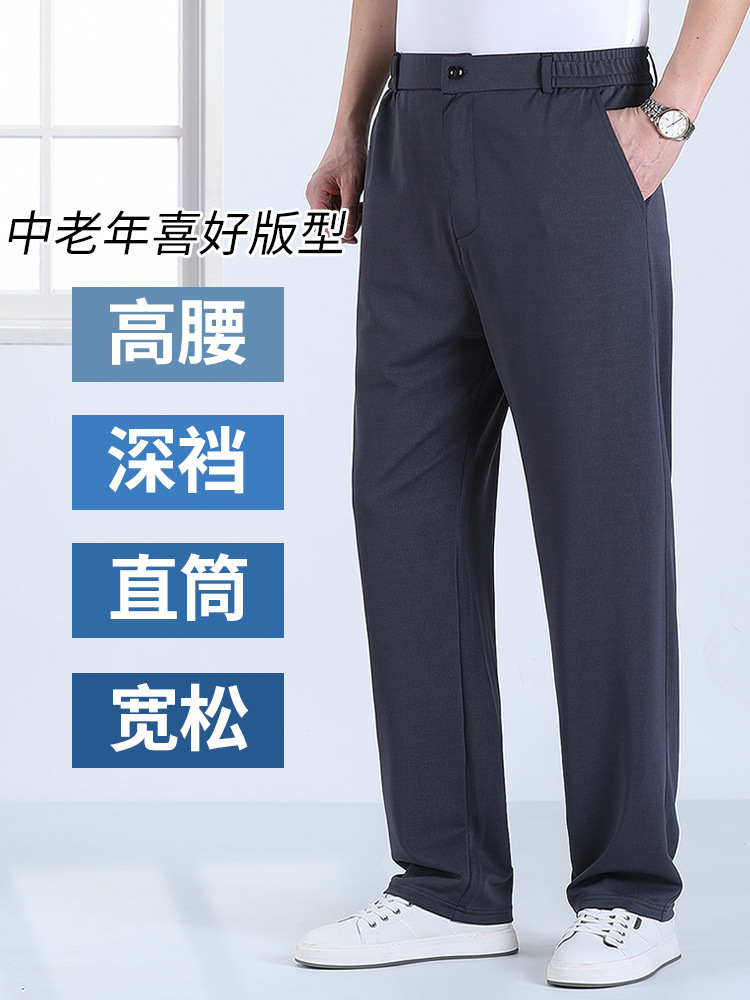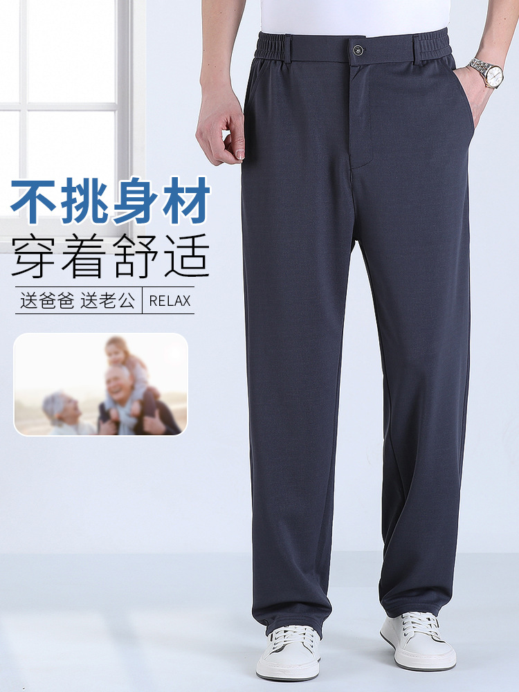 아빠 아이스 실크 바지 여름 얇은 중년 남성 엘라 캐주얼 바지 새로운 여름 스트레이트 바지
