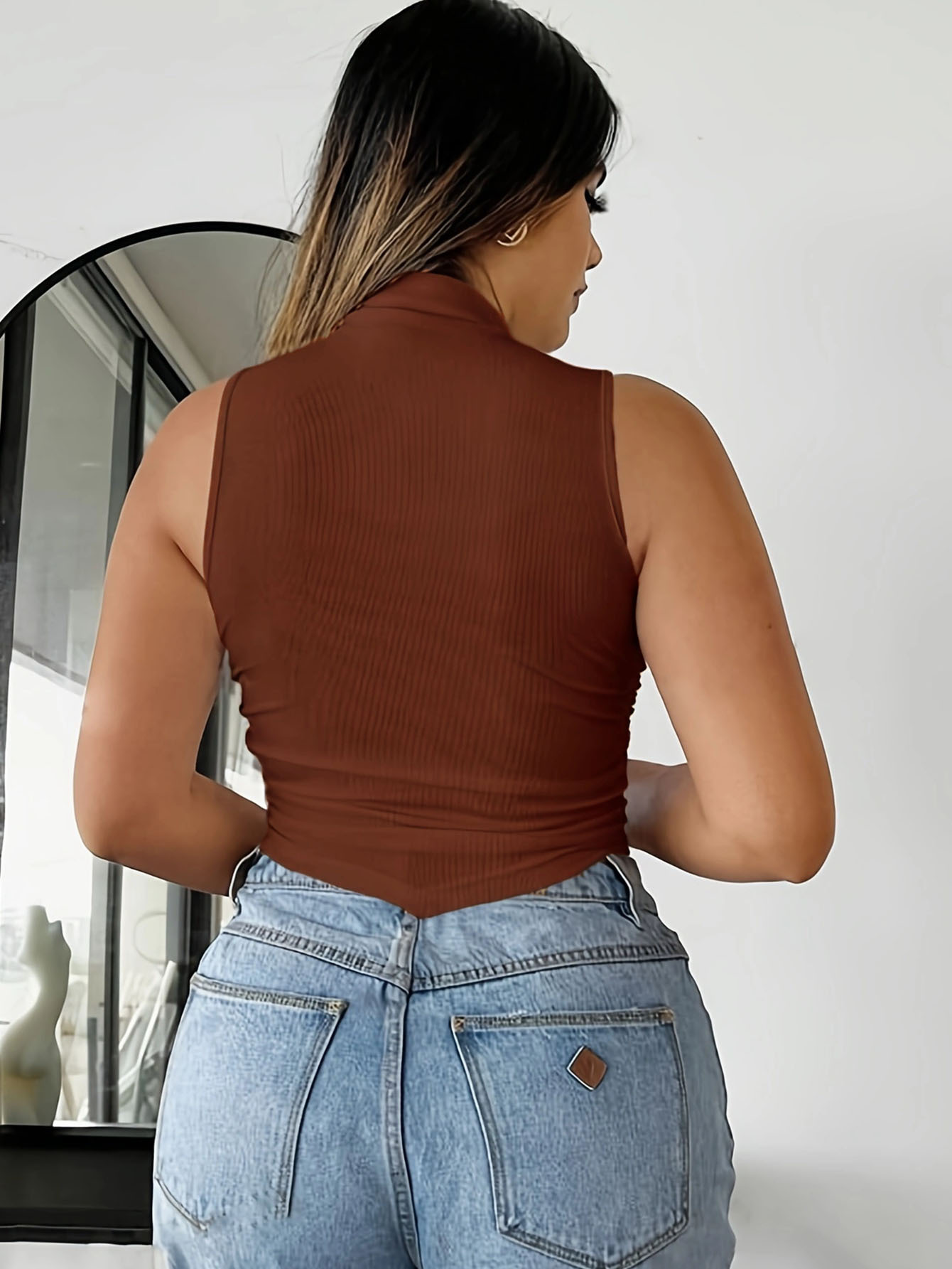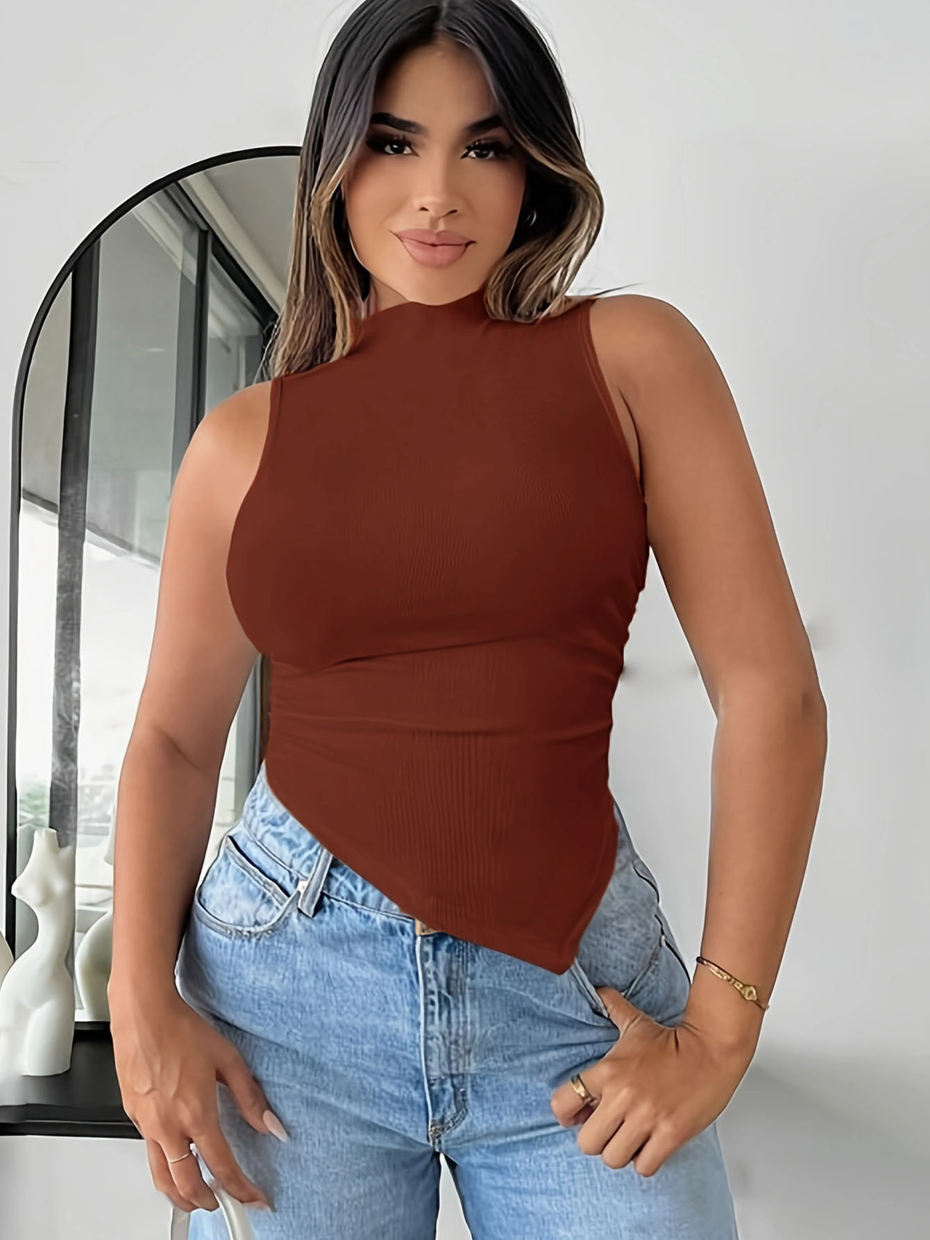 2025temu 더운 여름 단색 피트 실 스트레치 여성 민소매 니트 탑 조끼 티셔츠 탑